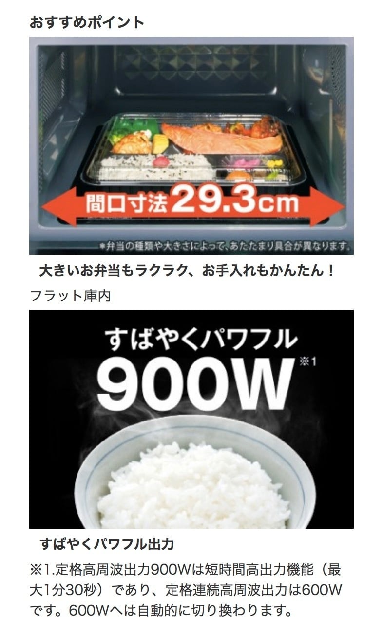 ターンテーブルを使わないので、大きなお弁当もラクラク入ります。底面も平らなので、お手入れもカンタンです。