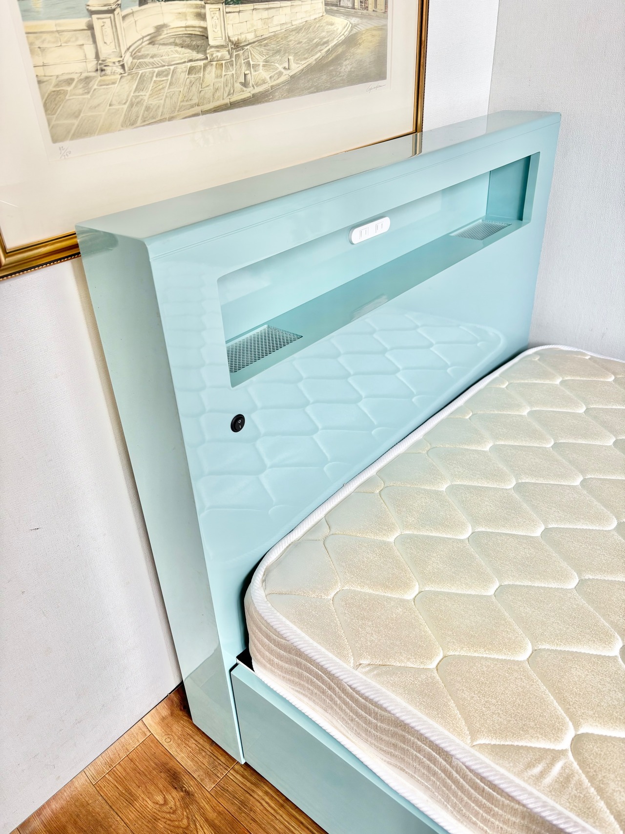 ヘッドには間接照明、コンセント付き☆