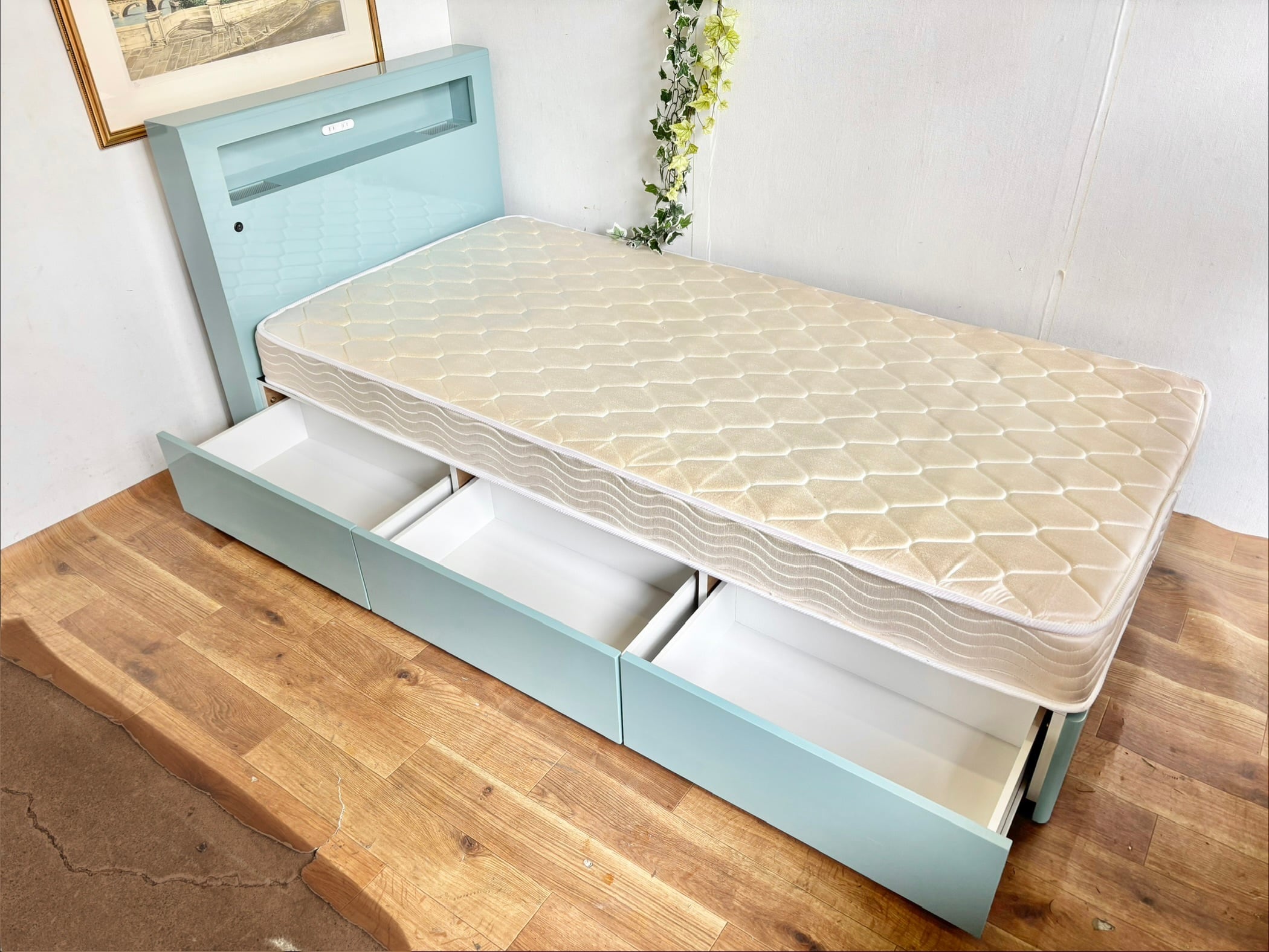 人気の収納付きシングルベッドです。