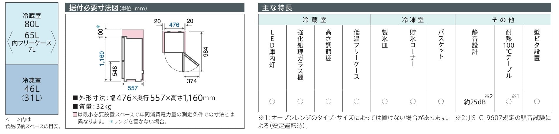 上が冷蔵室、下が冷凍室。