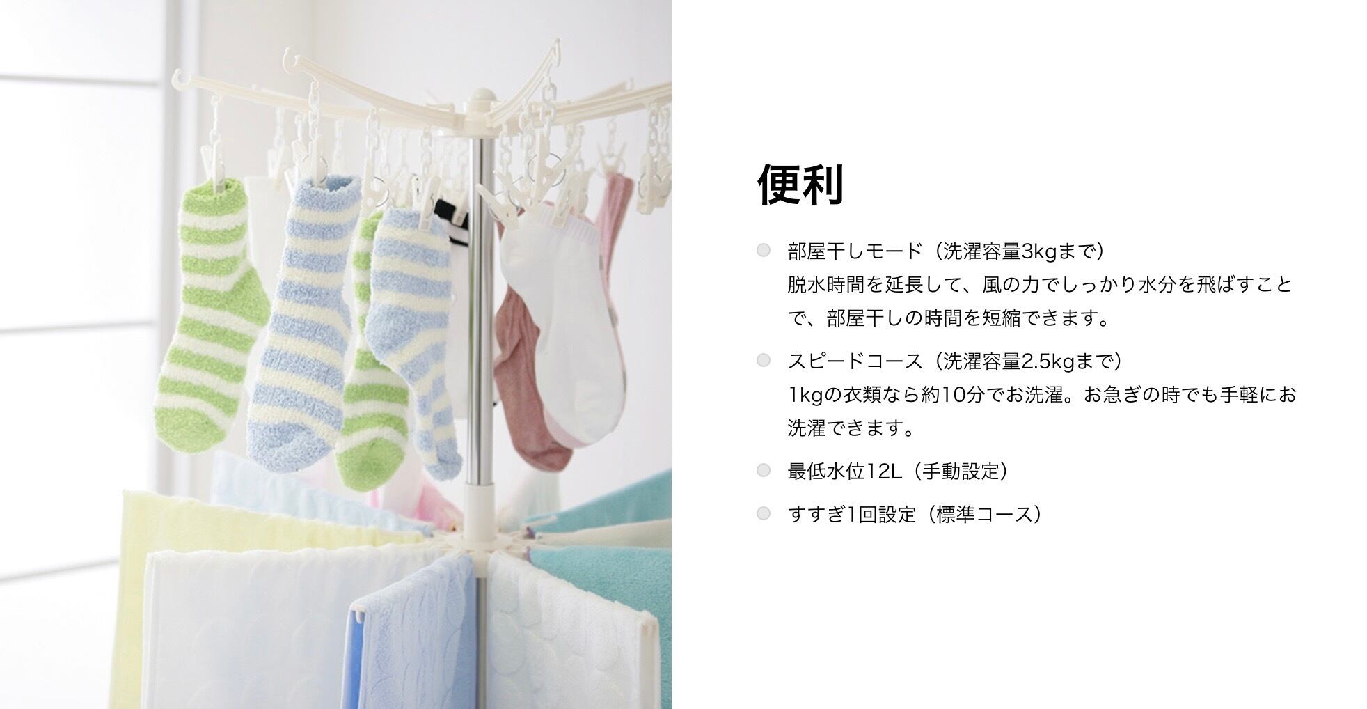 2本のシャワーで洗浄液を衣類全体にしっかり浸透させるから、ムラを抑えてキレイに洗います。