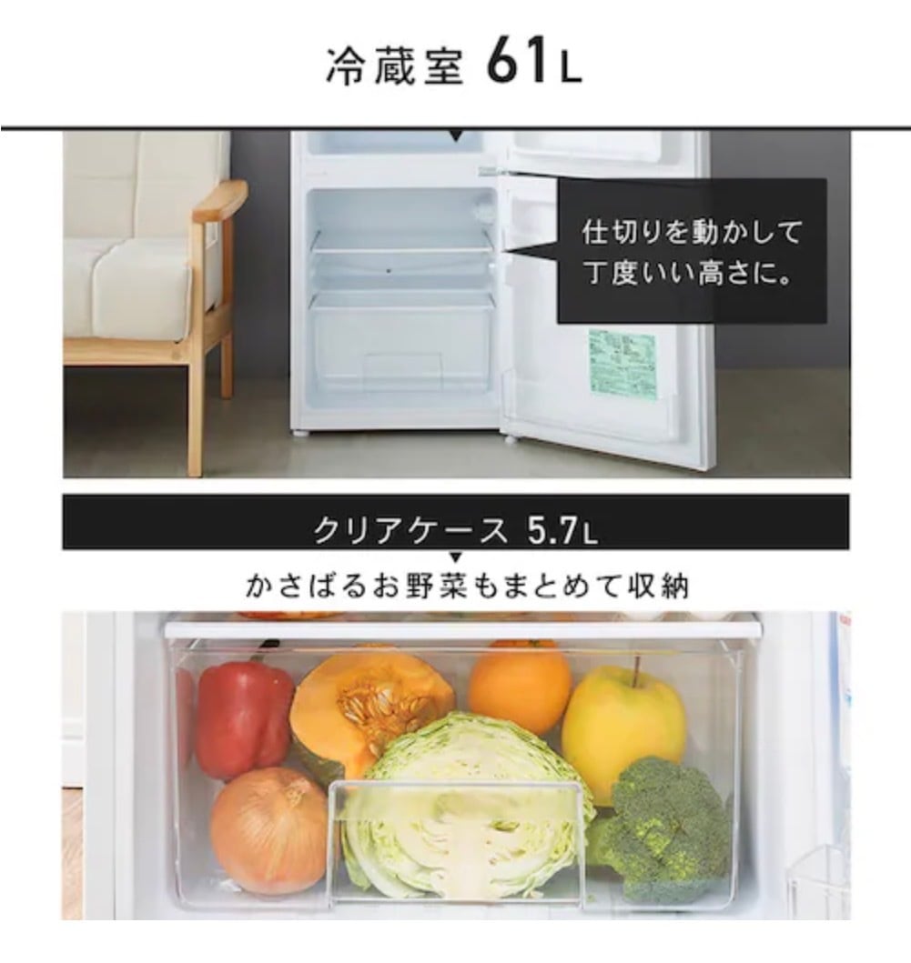 上が冷凍室、下が冷蔵室です。