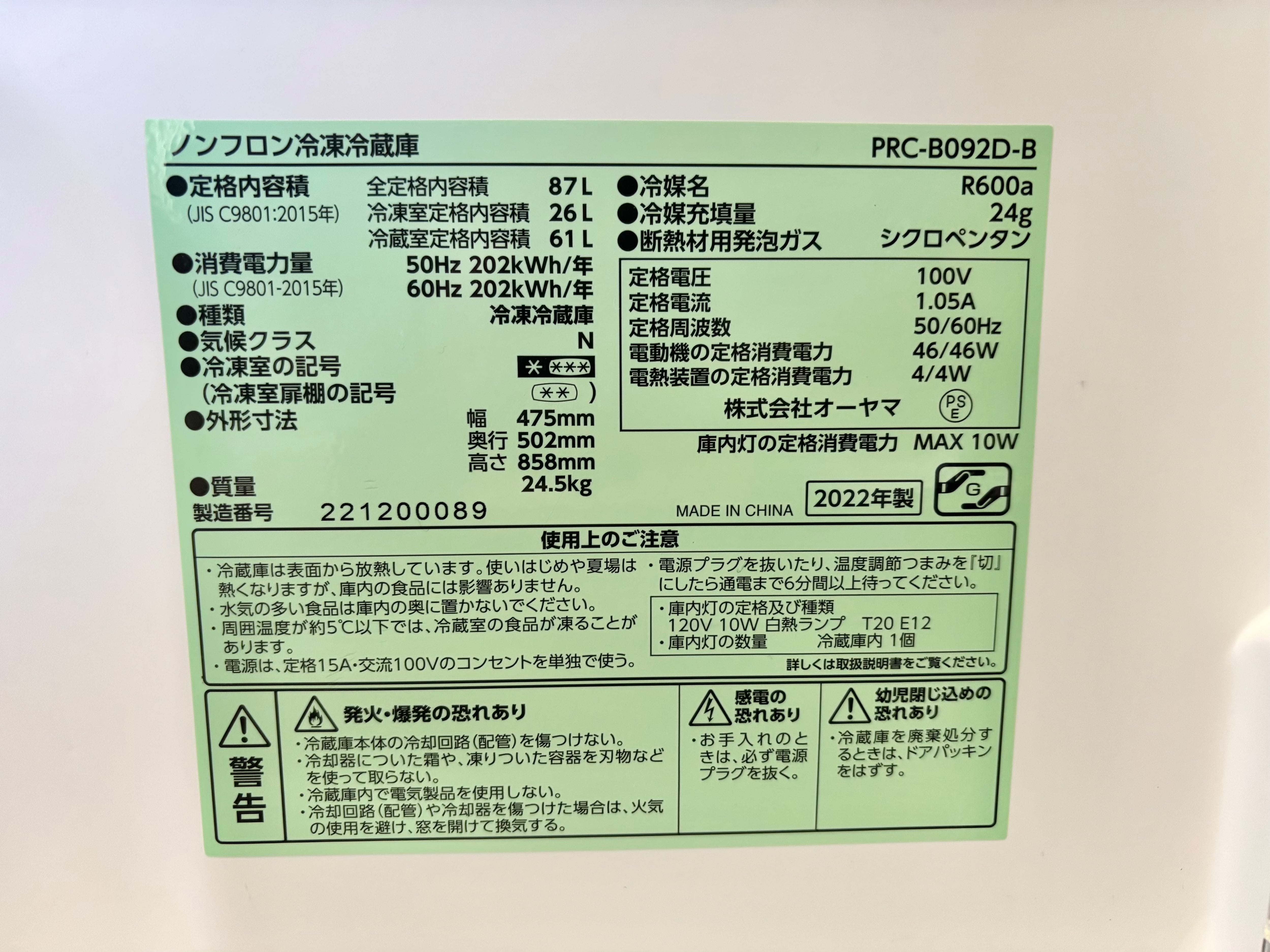 2022年製 IRIS 87L ノンフロン冷凍冷蔵庫