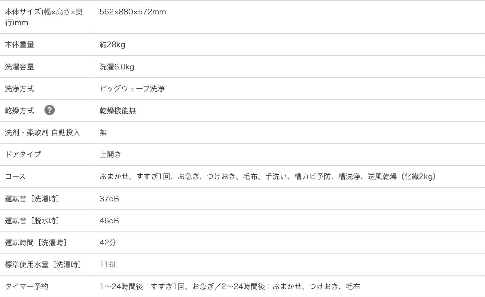 6.0kg Panasonic 洗濯機 2020年製