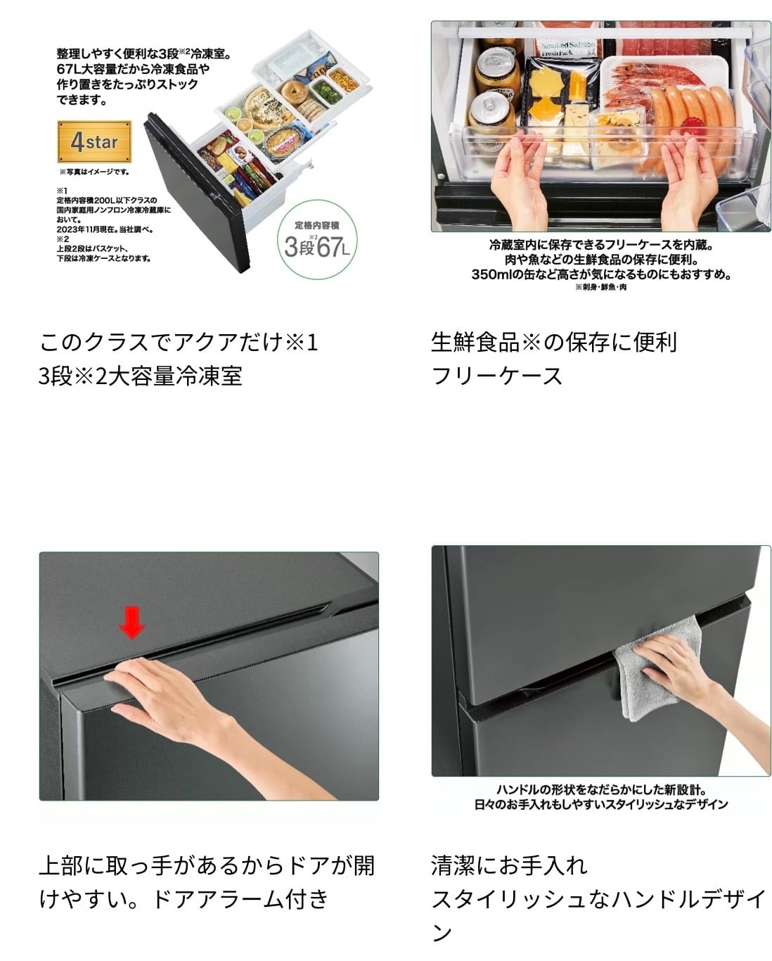 ・引き出しタイプで冷凍食品をたっぷりストック「3段67Lフリーザー」