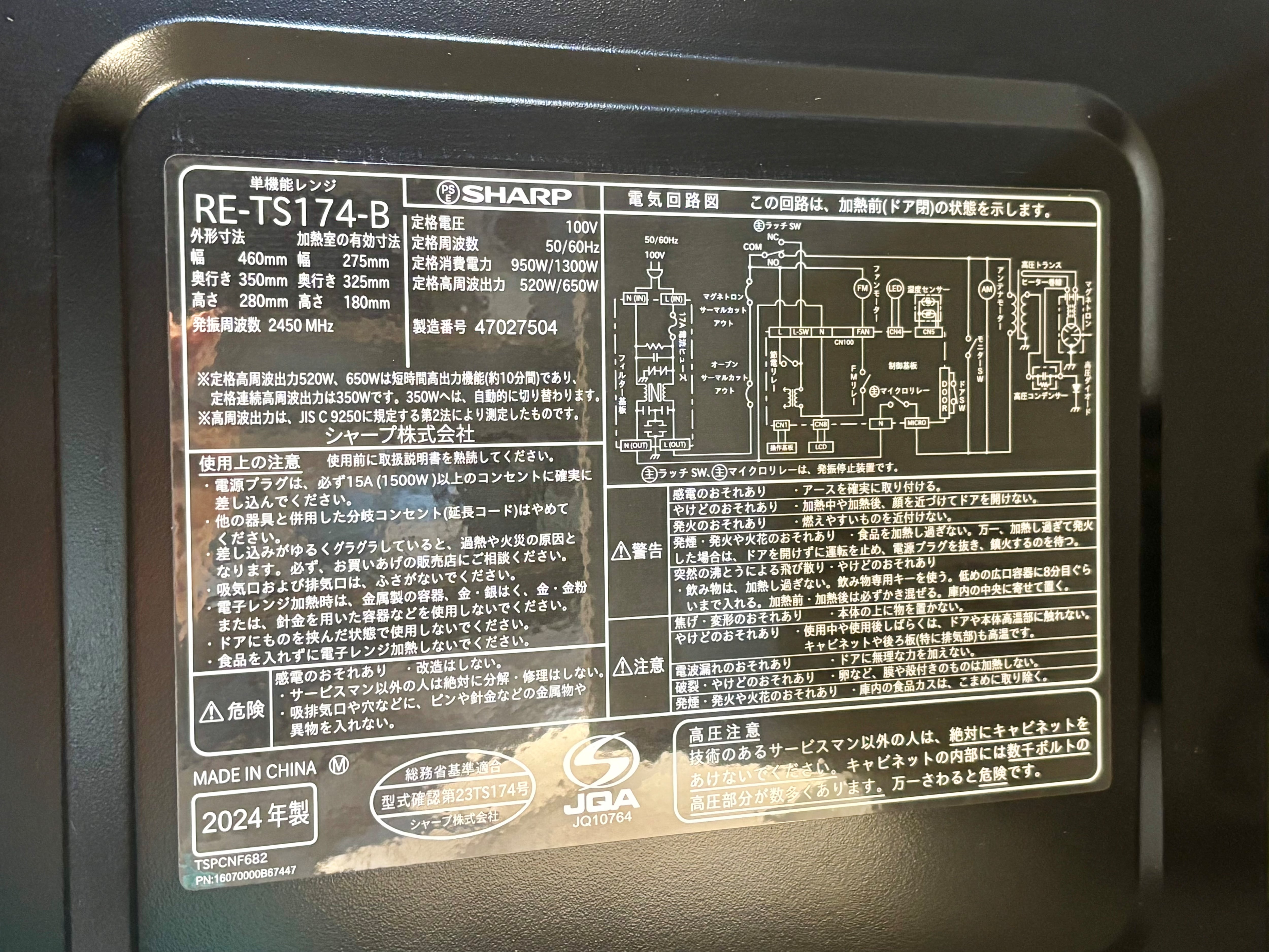 2024年製 SHARP フラット電子レンジ