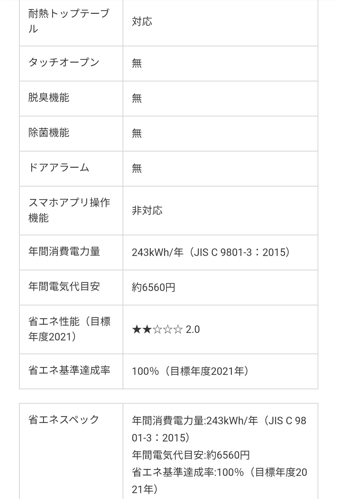 上が冷凍、下が冷蔵室。