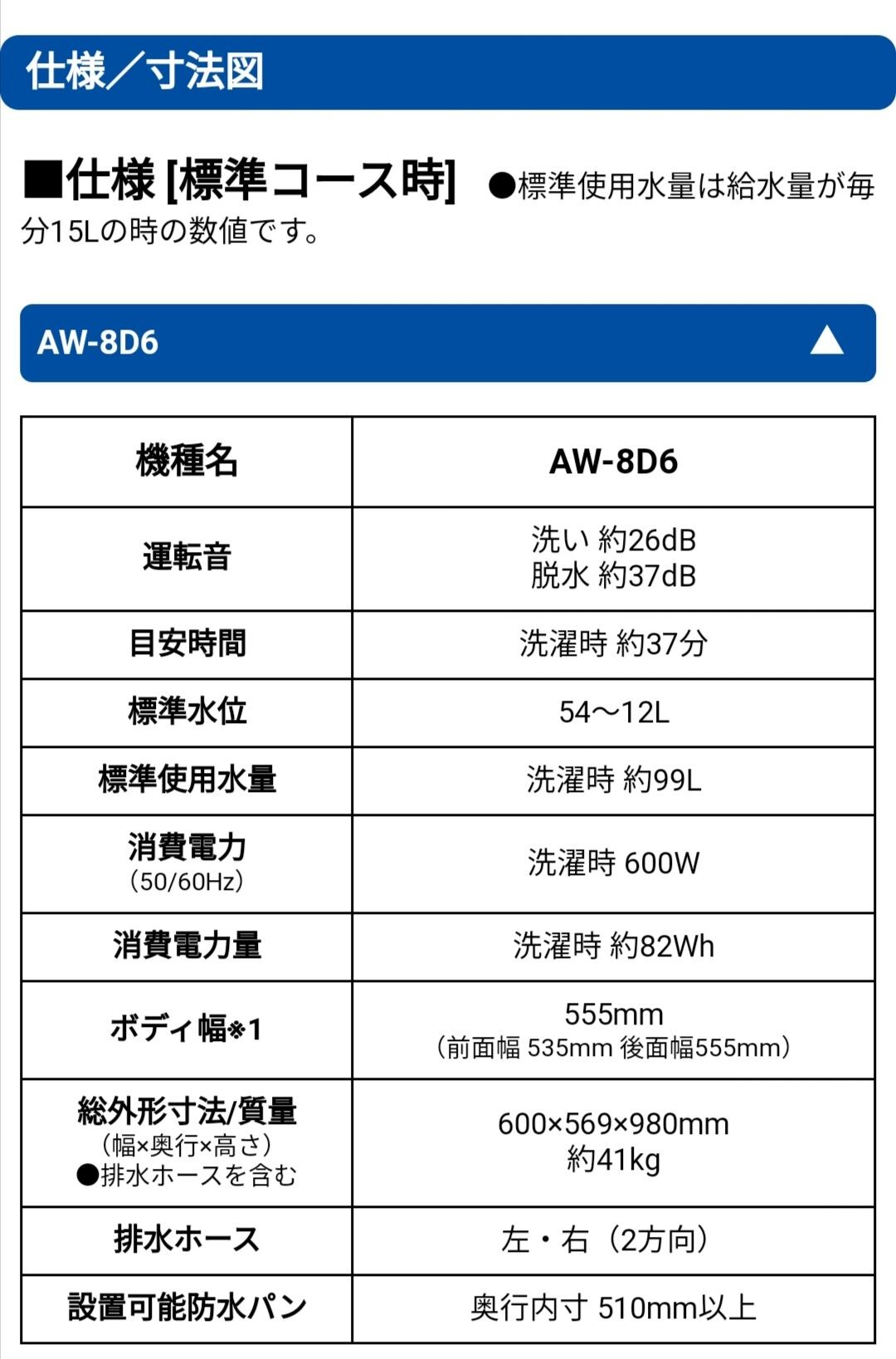 TOSHIBA 8kg 2018年 AW-8D6(W)