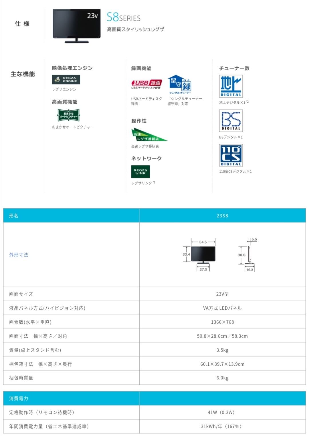 《SALE》23型 TOSHIBA REGZA 液晶テレビ 2014年 23S8