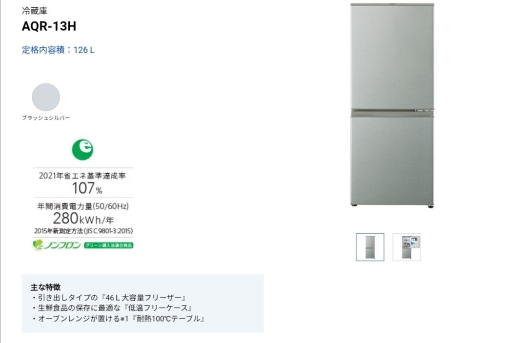 AQUA ノンフロン冷凍冷蔵庫 126L 2018年 AQR-13H(S)