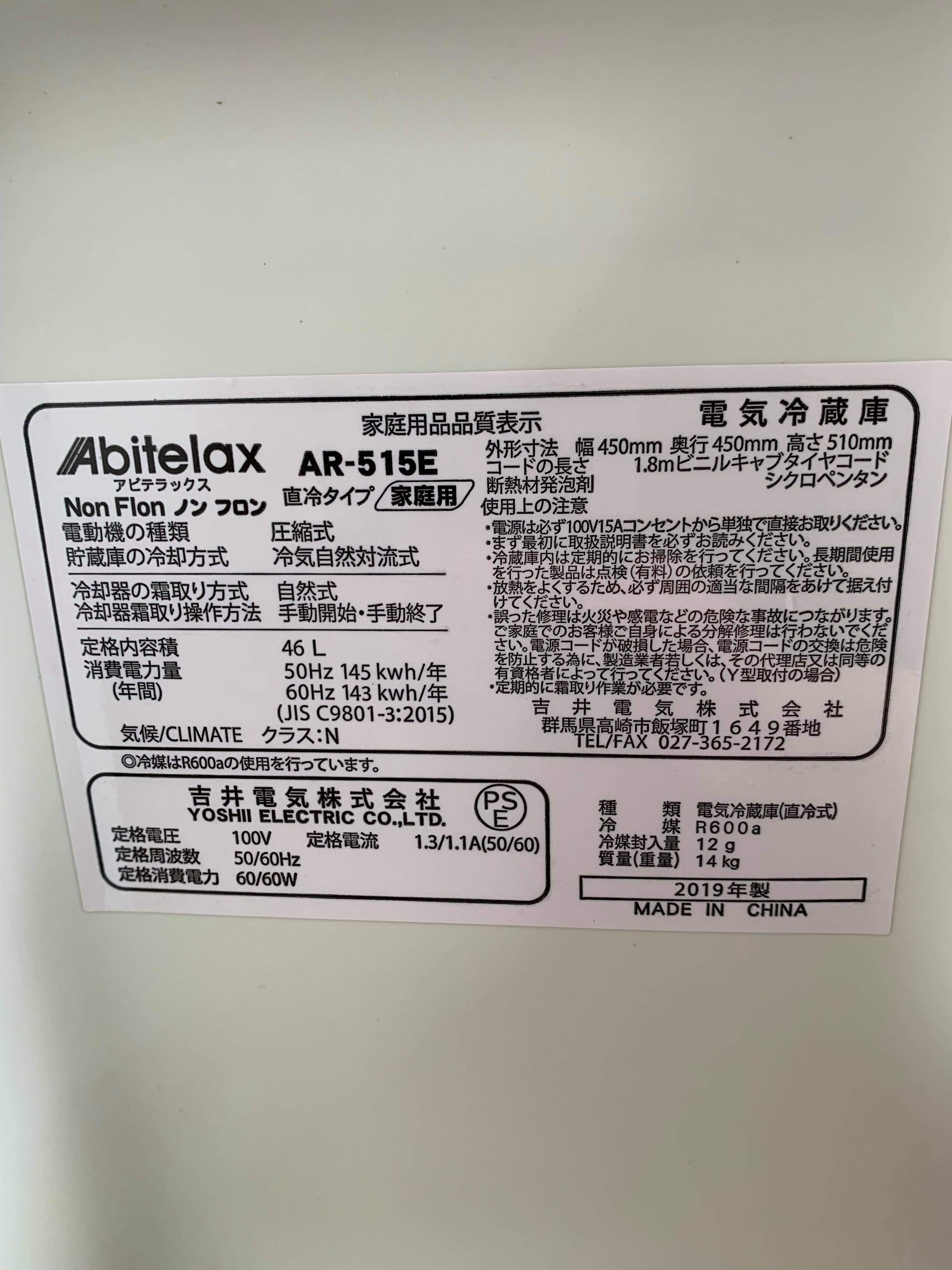 Abitelax ノンフロン冷蔵庫 46L 2019年 AR-515E