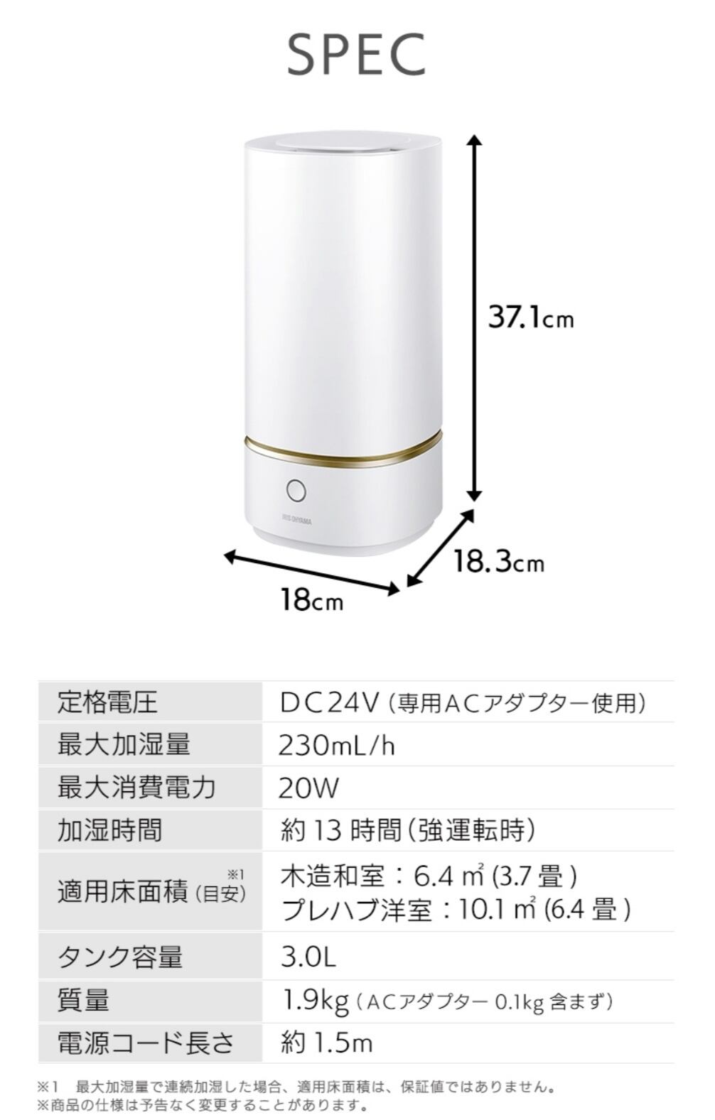 2020年製 IRIS 上給水超音波加湿器 UTK-230-W