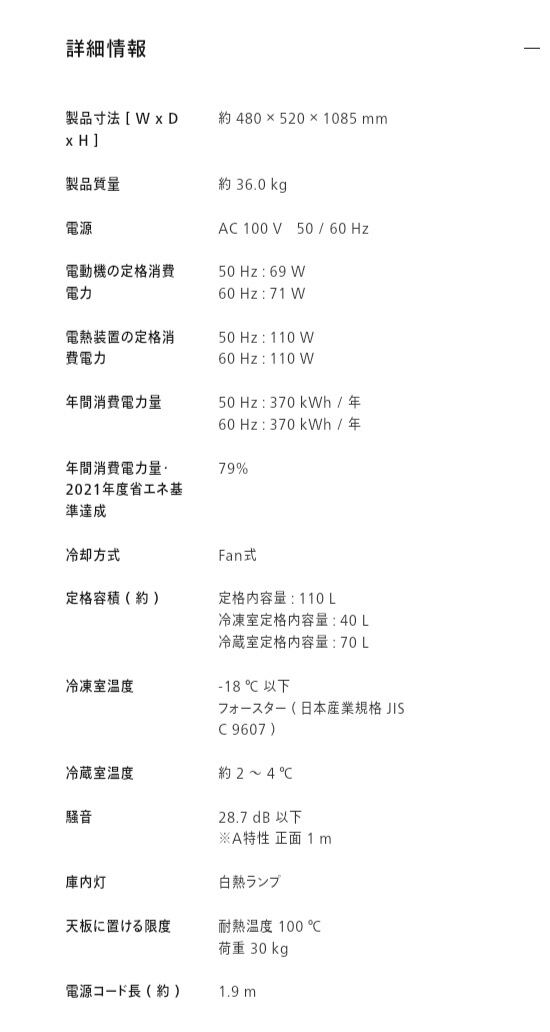 TWINBIRD ノンフロン冷凍冷蔵庫 110L 2018年 HR-E911