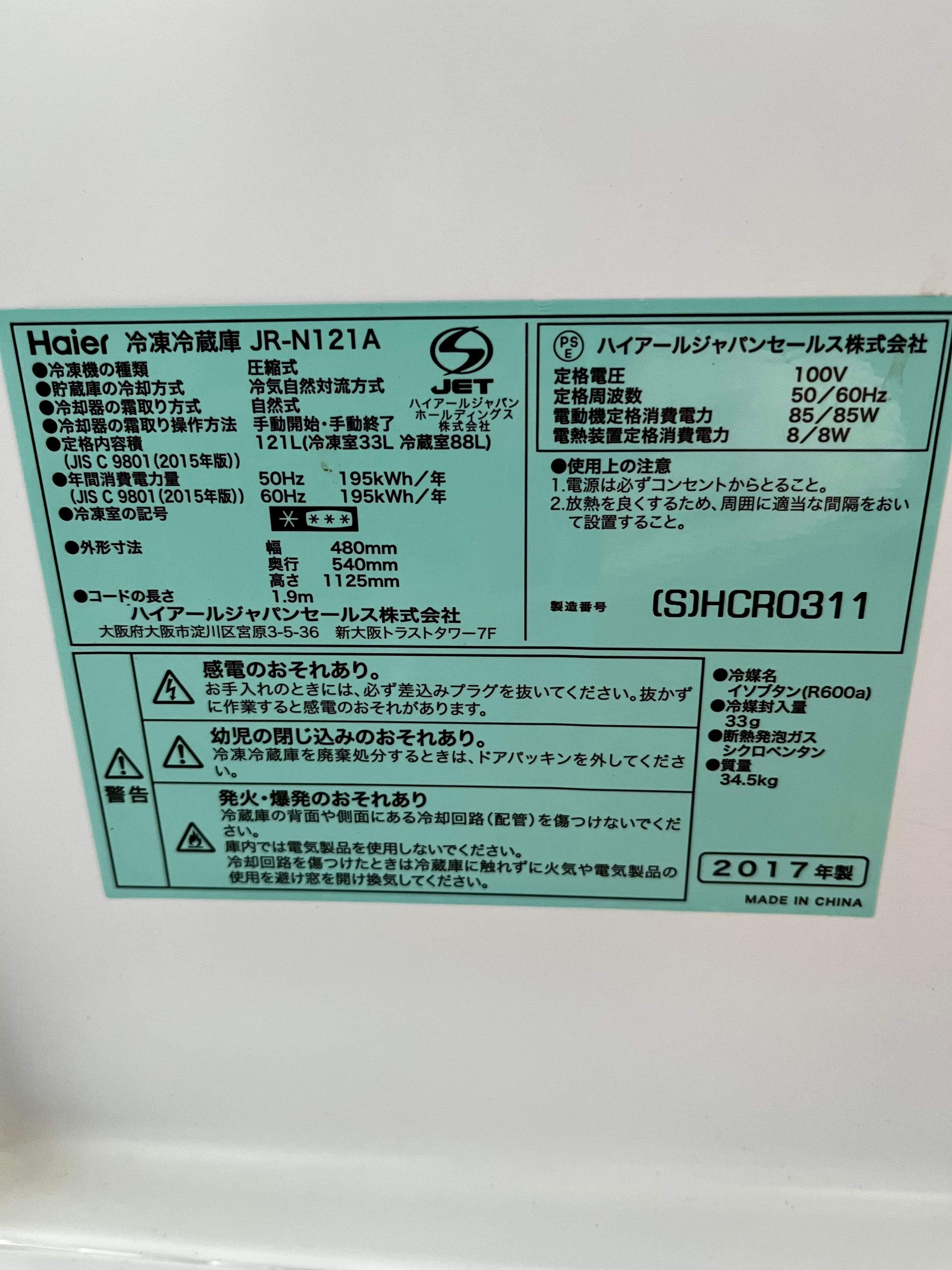 Haier 冷凍冷蔵庫 121L 2017年 JR-N121A