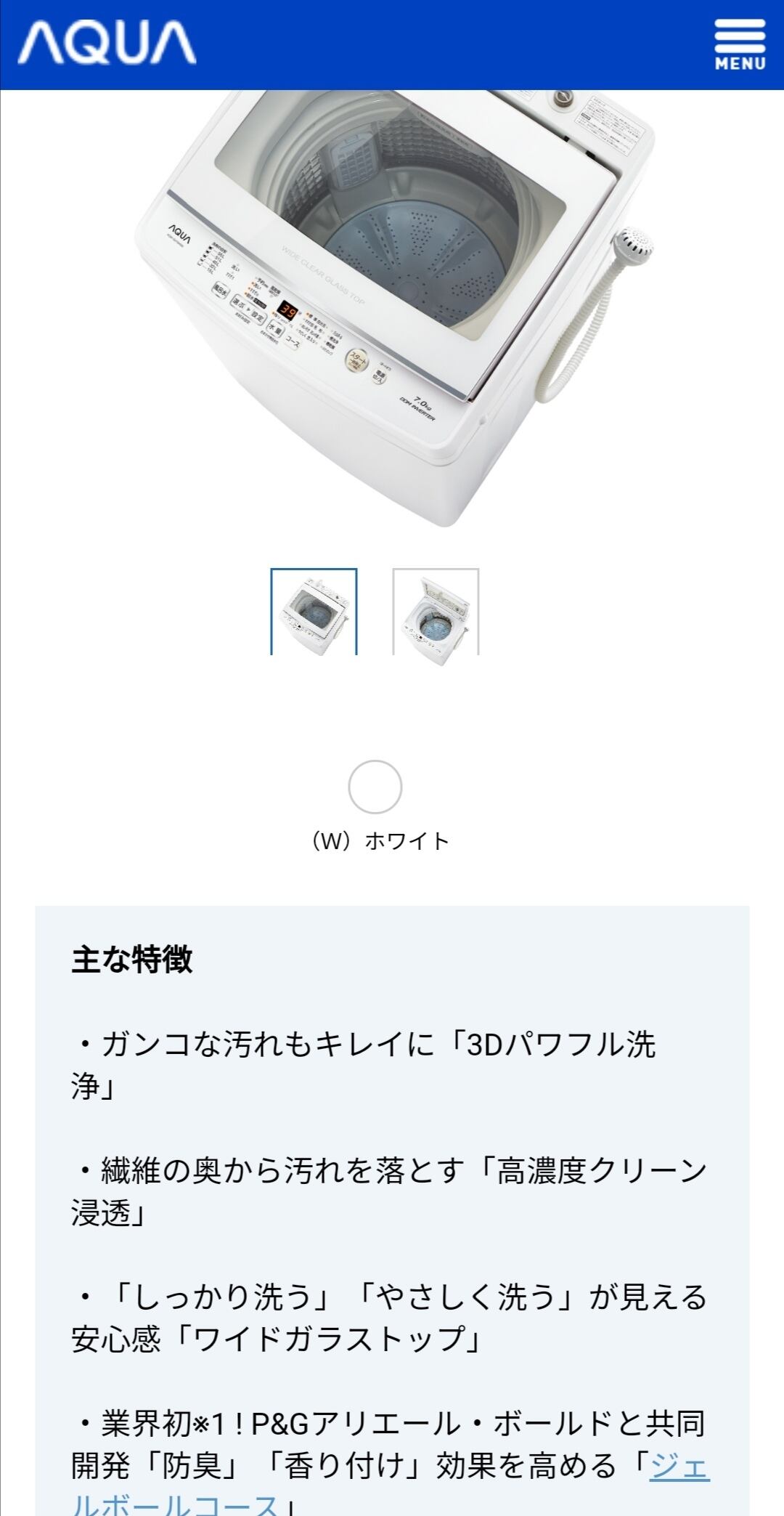 AQUA 7kg 2019年 AQW-GV70H(W)