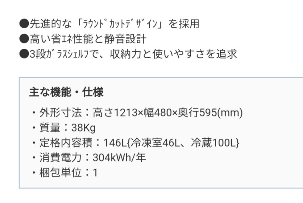 MITSUBISHI ノンフロン冷凍冷蔵庫 146L 2019年 MR-P15D-S