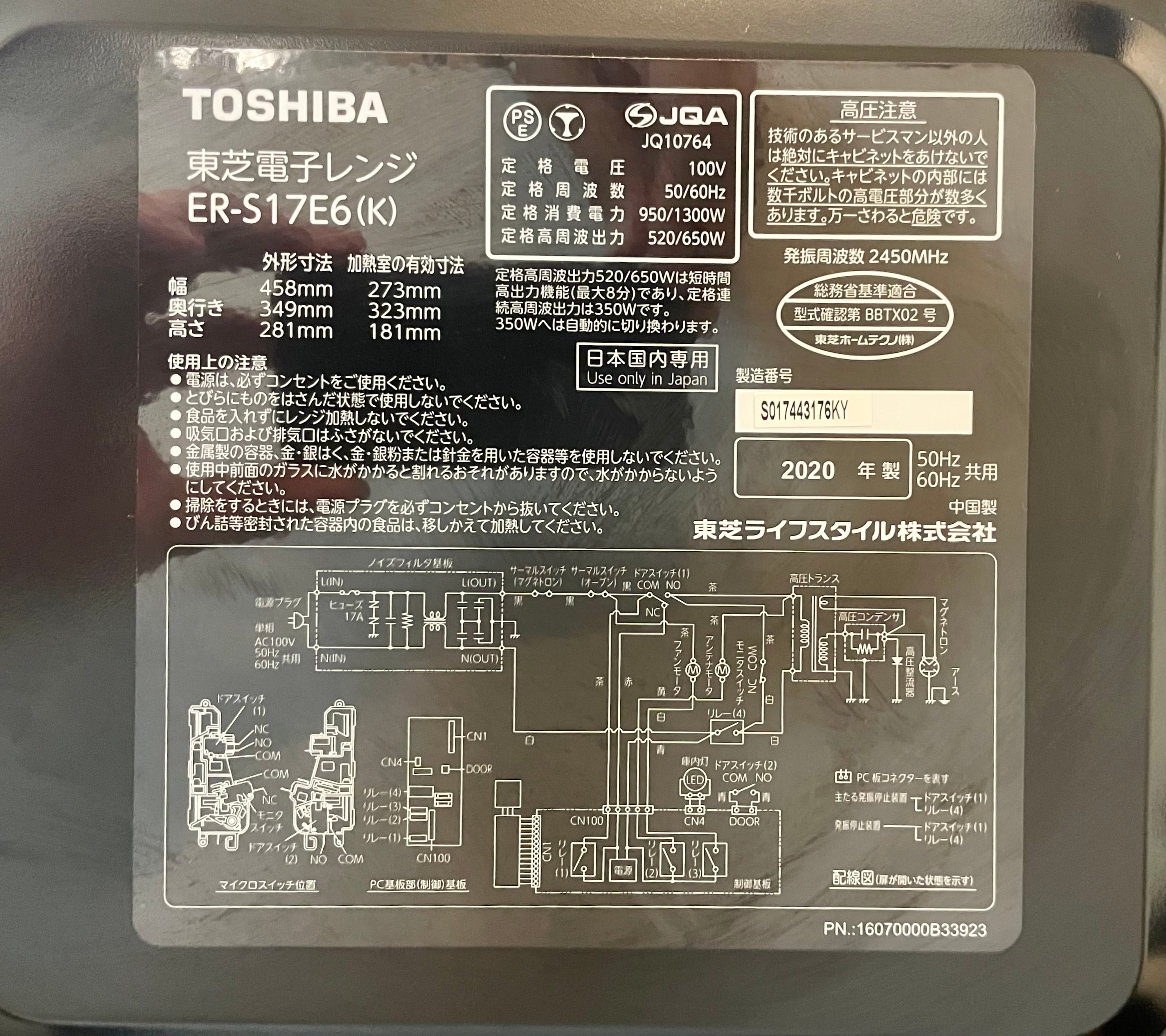 2020年製 TOSHIBA フラット電子レンジ ER-S17E6(K)