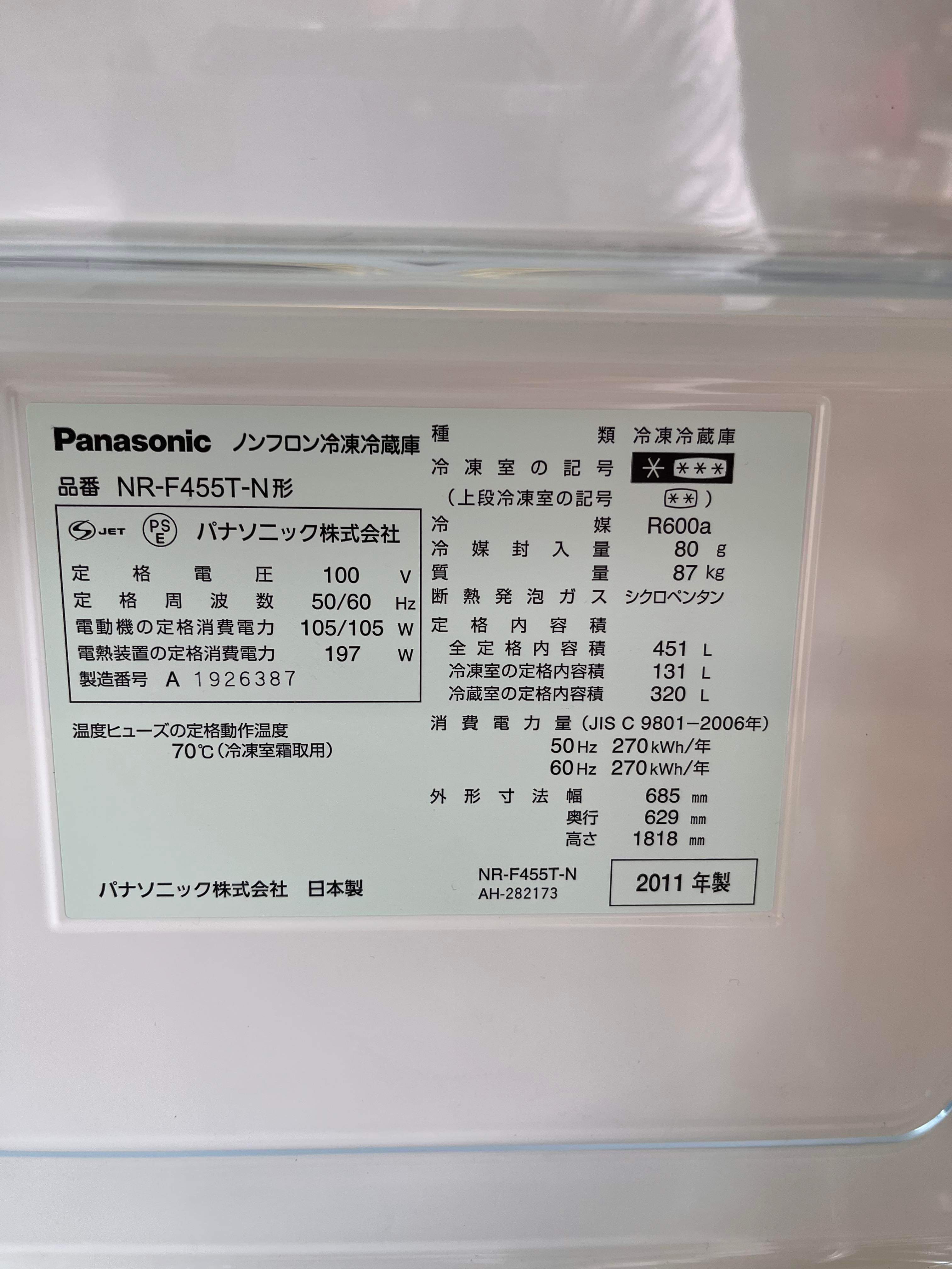 2011年製 Panasonic ノンフロン冷凍冷蔵庫 451L NR-F455T-N