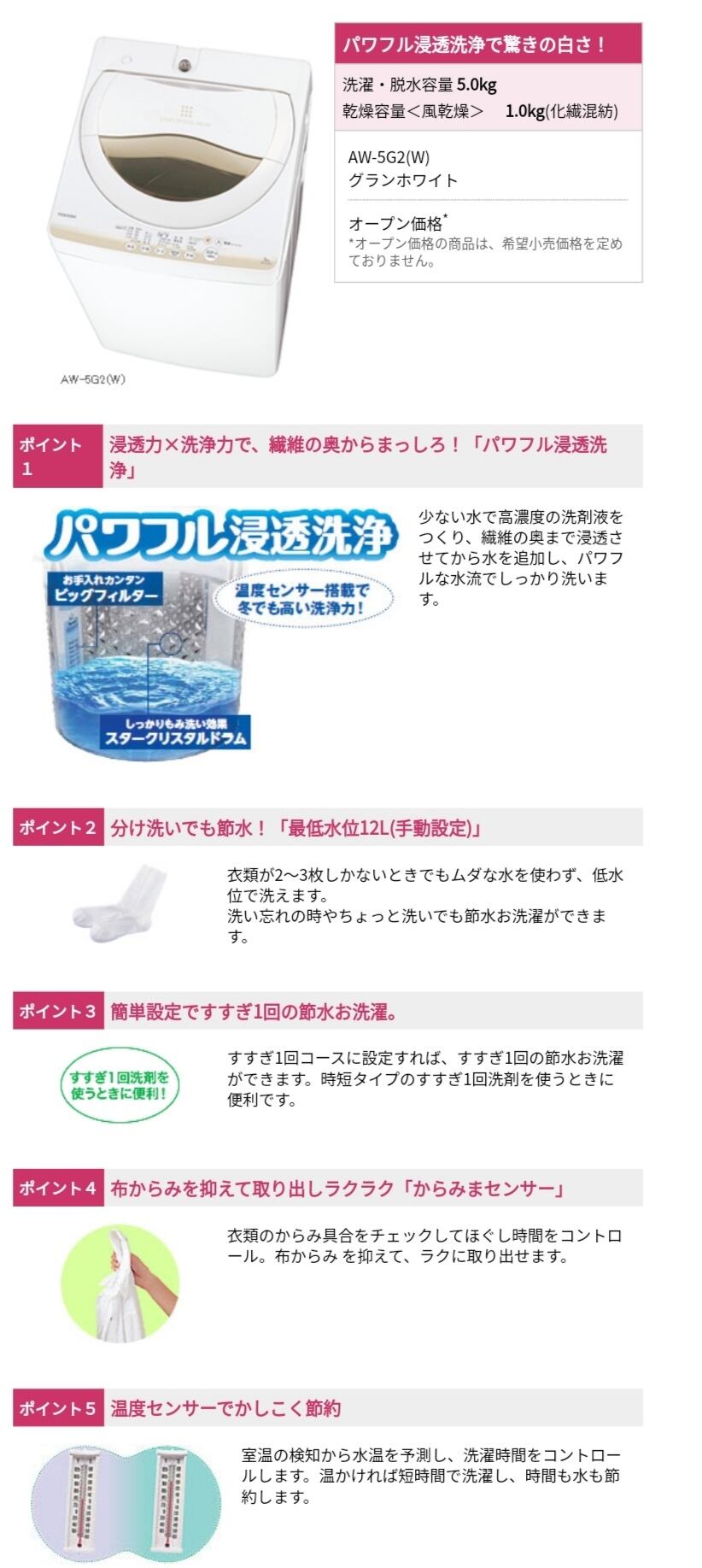 2015年製 5.0kg TOSHIBA AW-5G2(W)