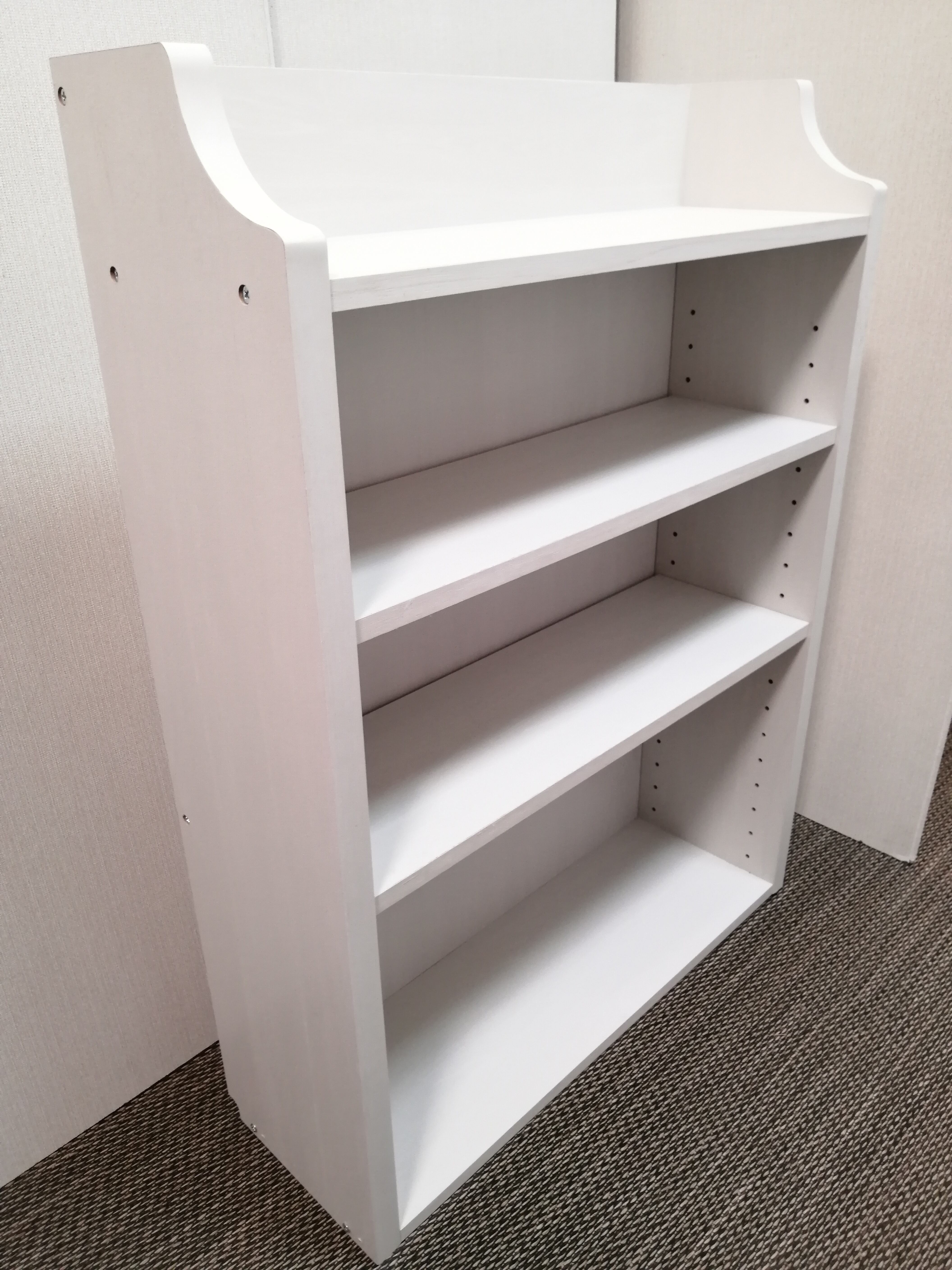 ずっしりしっかりした造りで、写真4枚めのようにダボの位置を変えて各棚の場所を変えられます♪