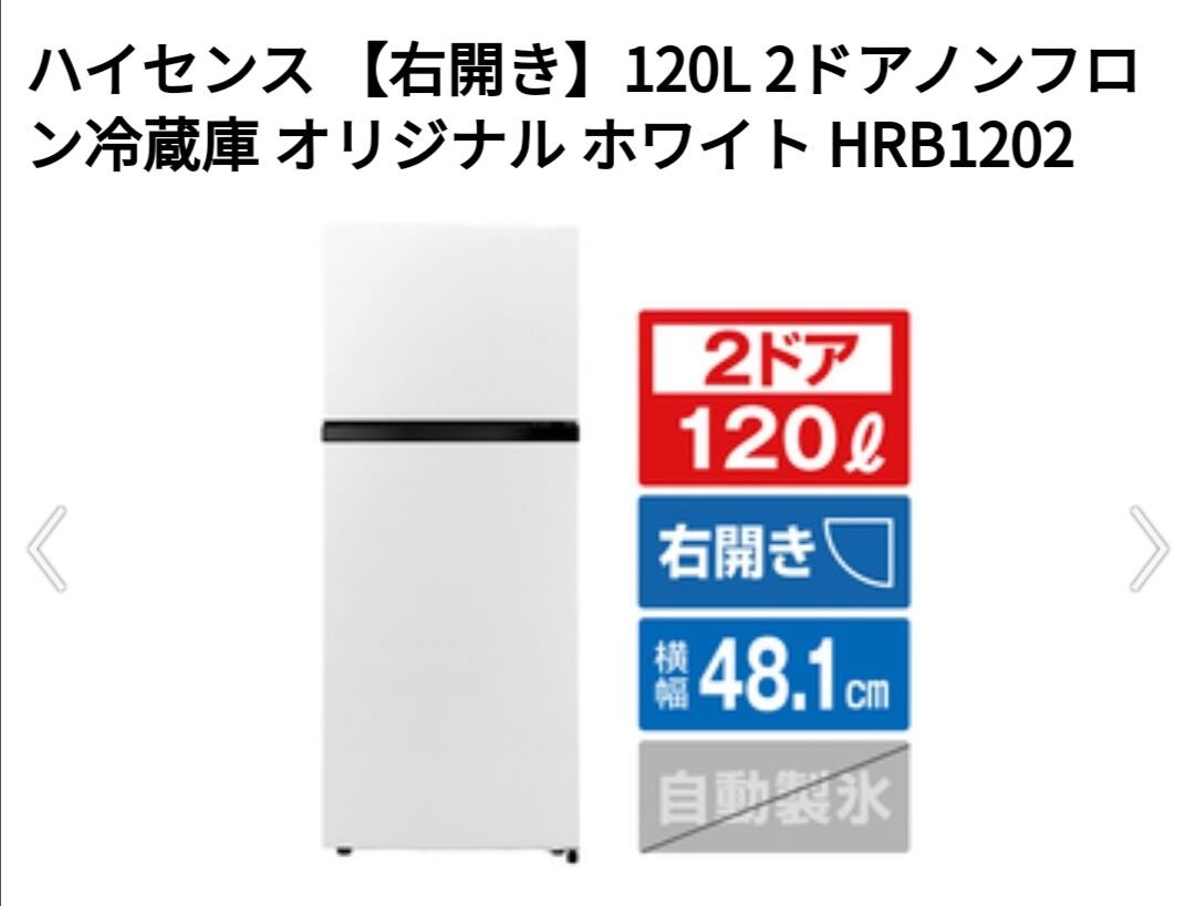 2020年製 Hisense ノンフロン冷凍冷蔵庫 120L HR-B1202