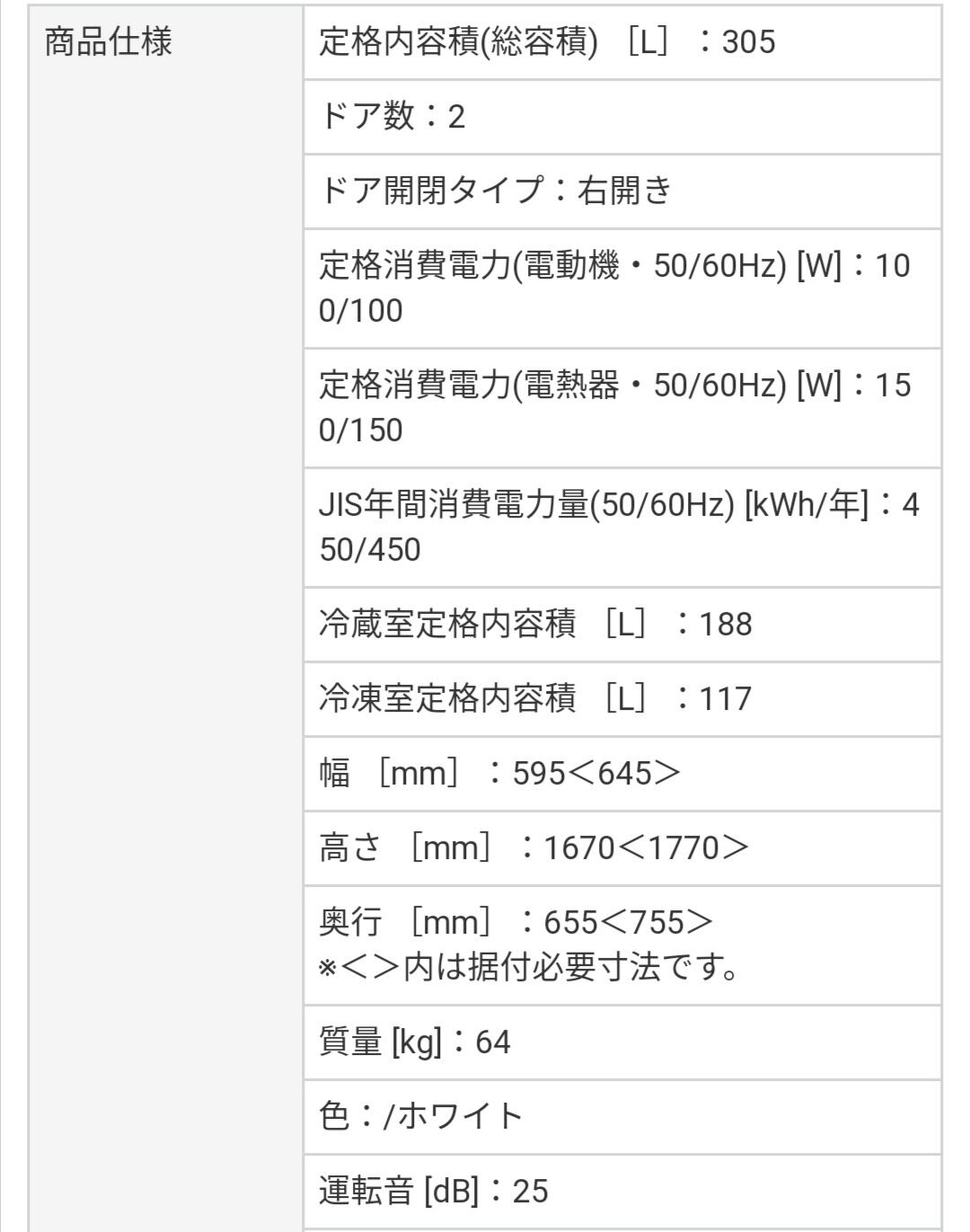 上が冷蔵、下が冷凍