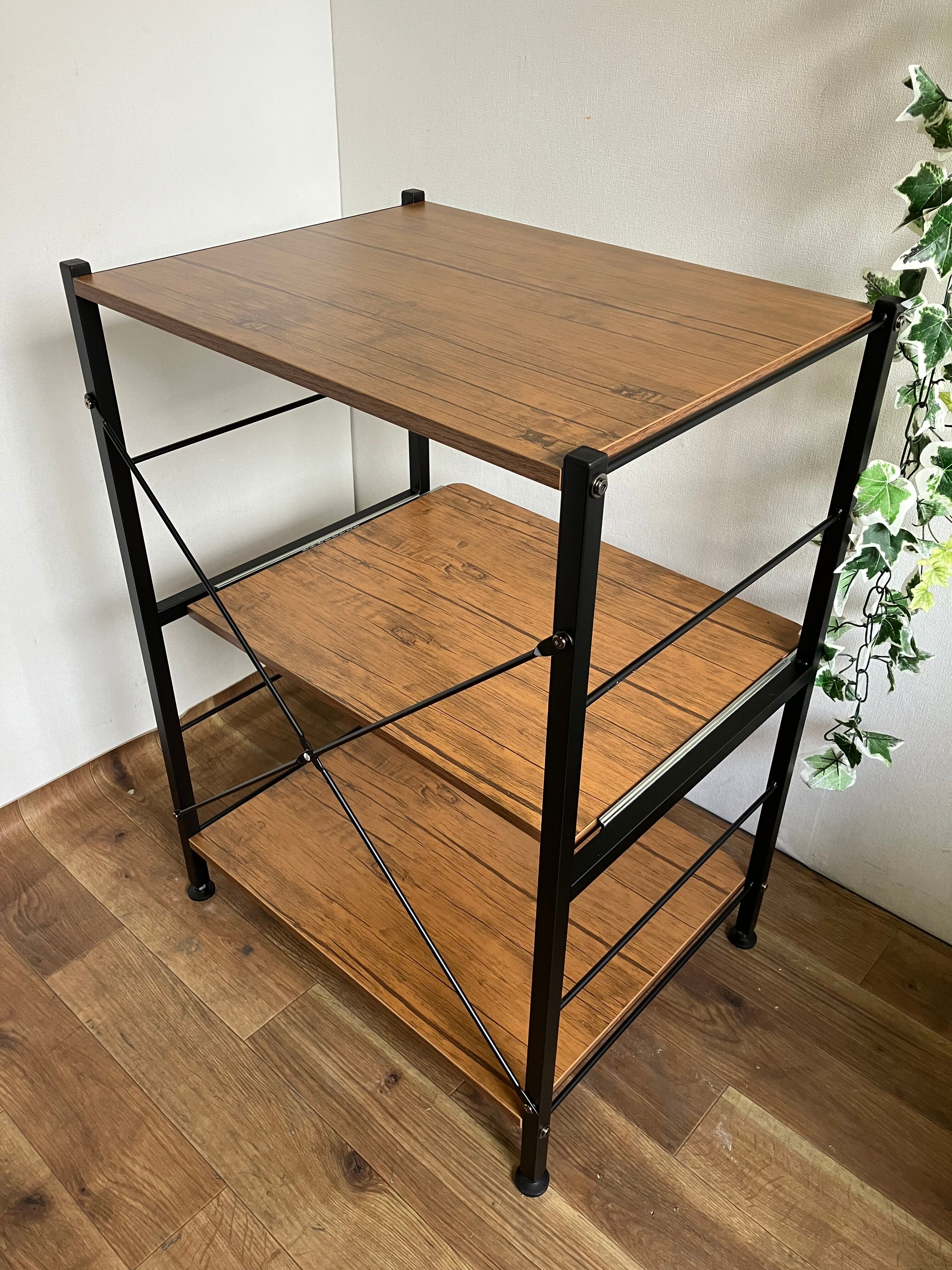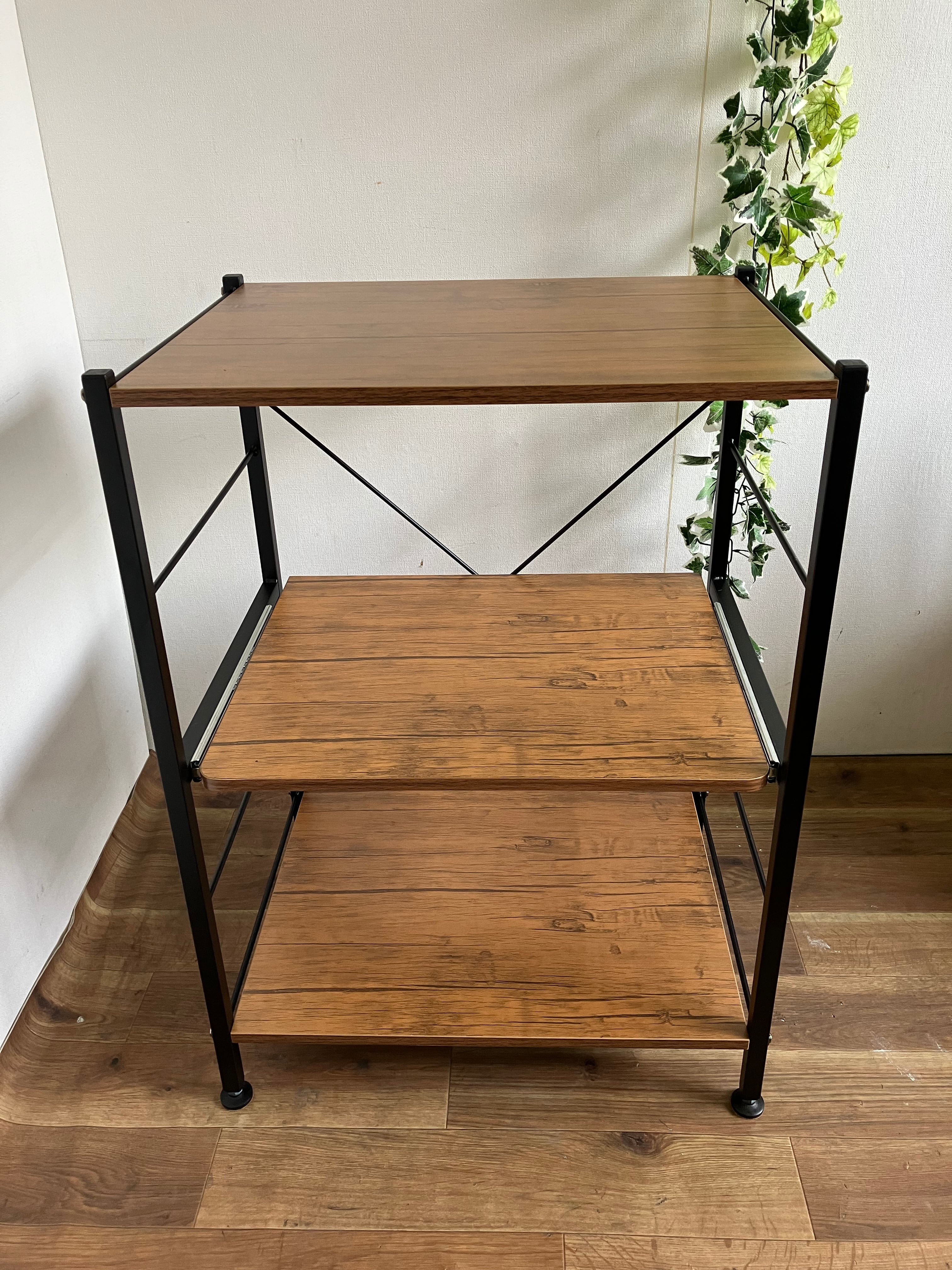 真ん中の棚がスライドしますので炊飯器などの家電を置くのにも最適です。