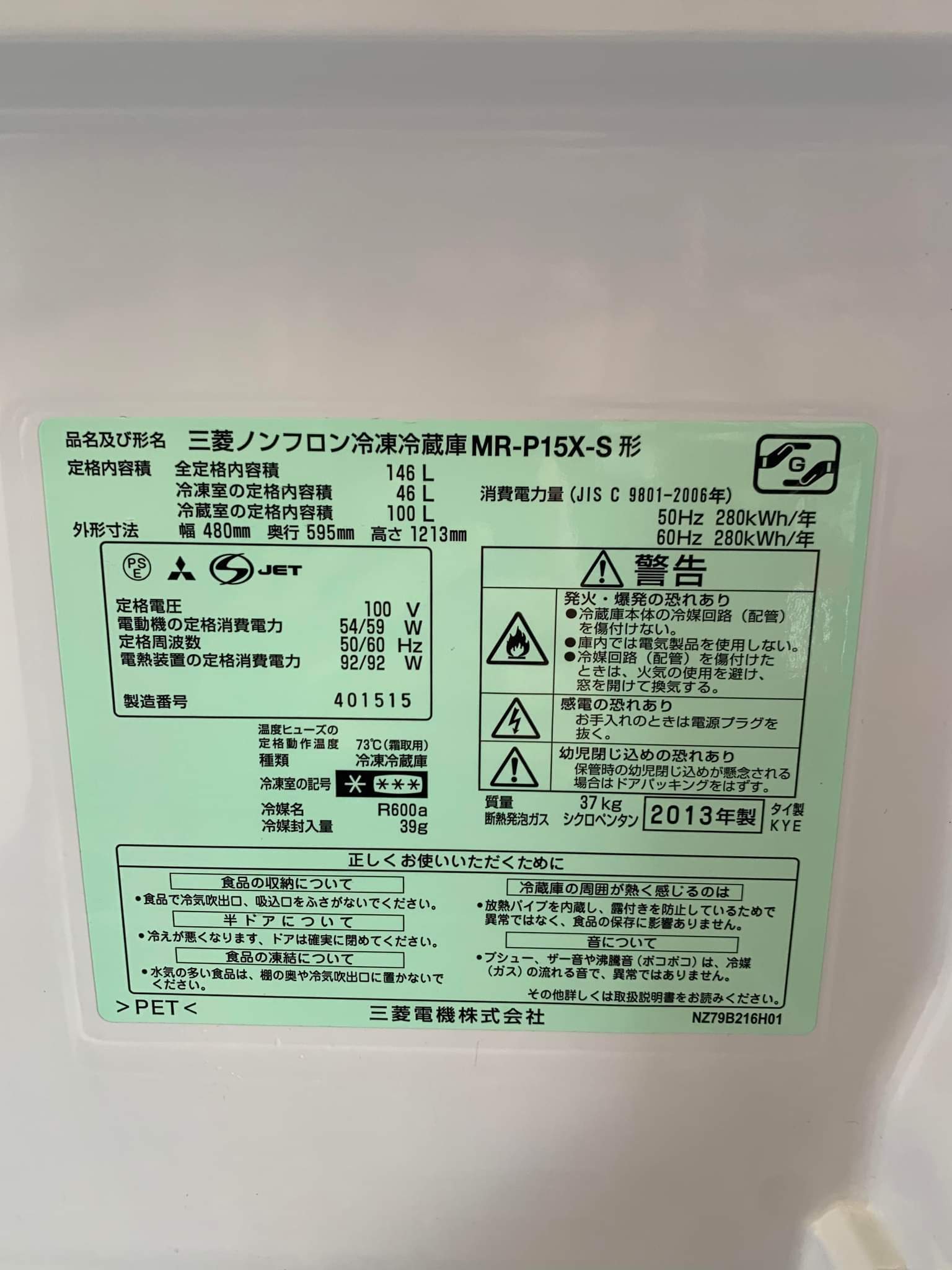 2013年製 MITSUBISHI 冷蔵庫 146L MR-P15X