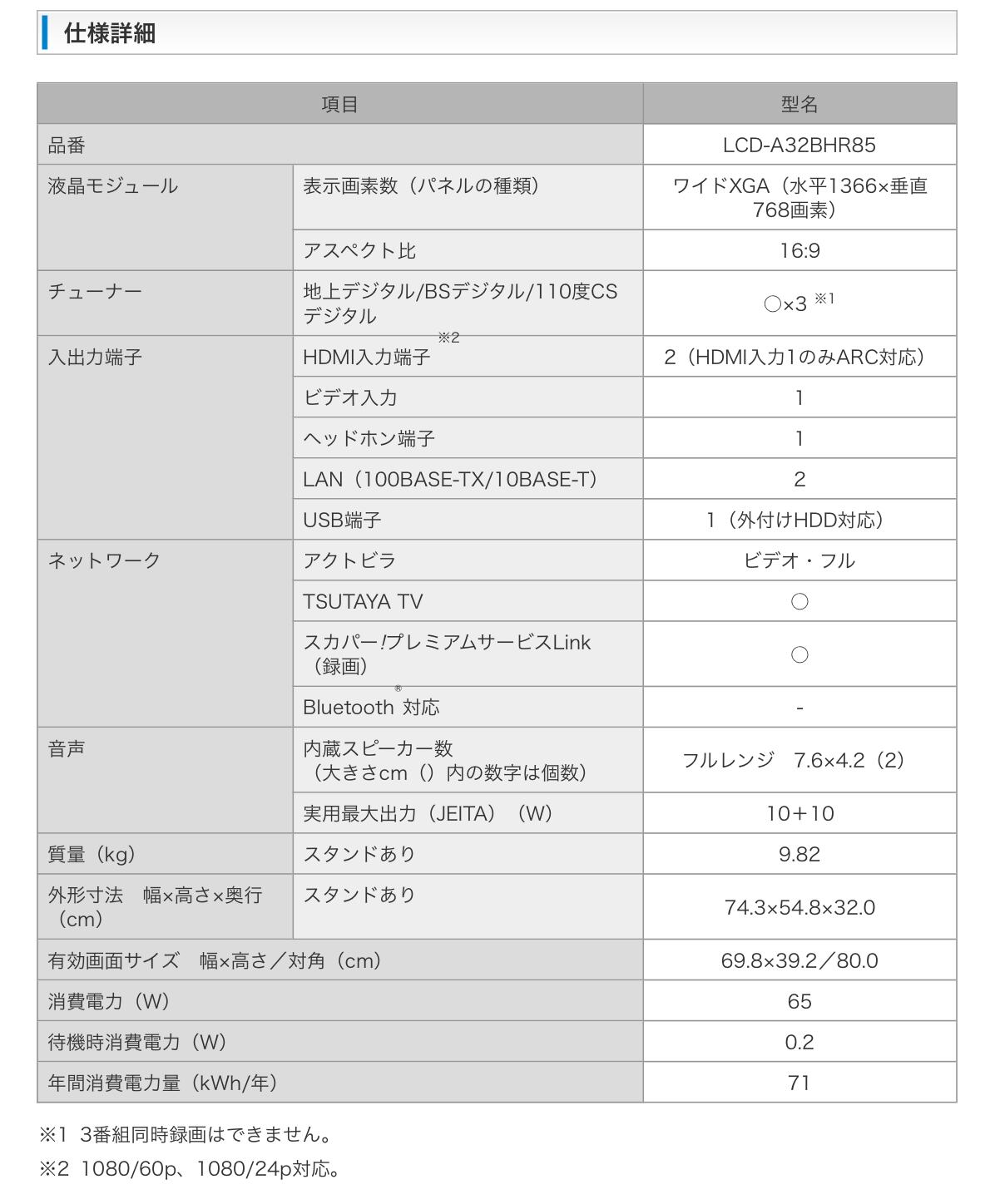 2017年製 32型 MITSUBISHI Blue-ray内蔵 HDD 液晶テレビ LCD-A32BHR85