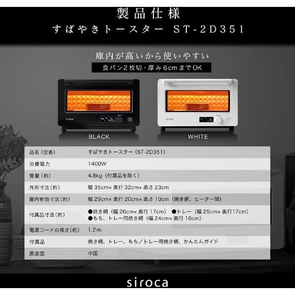 見た目もオシャレで機能も抜群なsirocaのオーブントースターが入荷しました♪