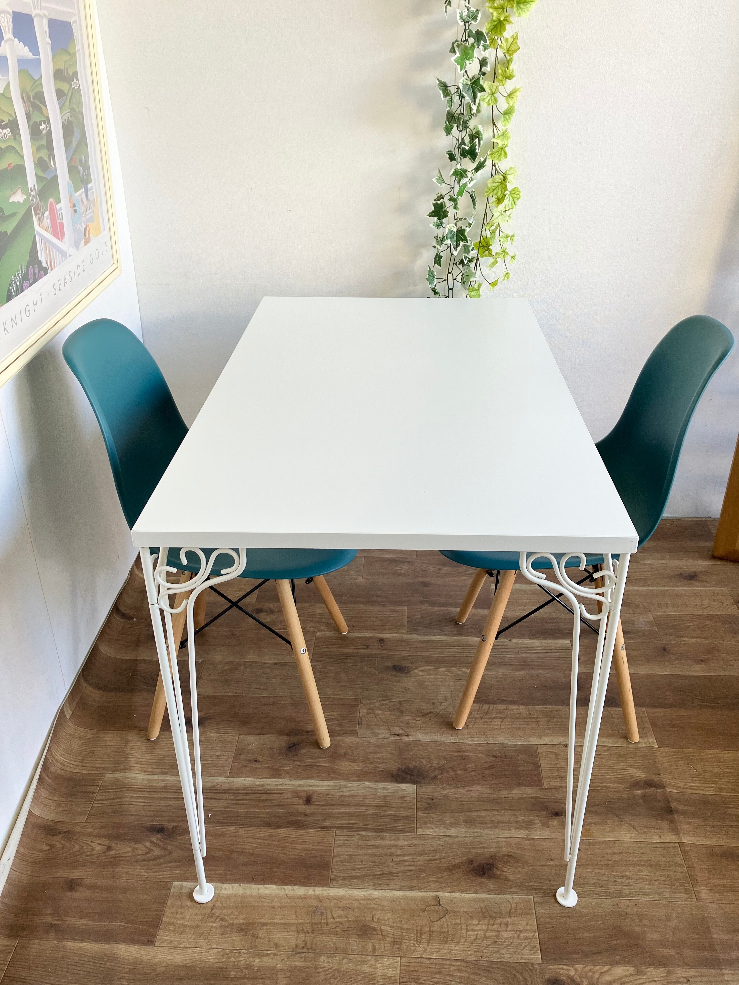 ホワイトアイアンテーブル & リプロダクト イームズチェア2脚 3点セット
