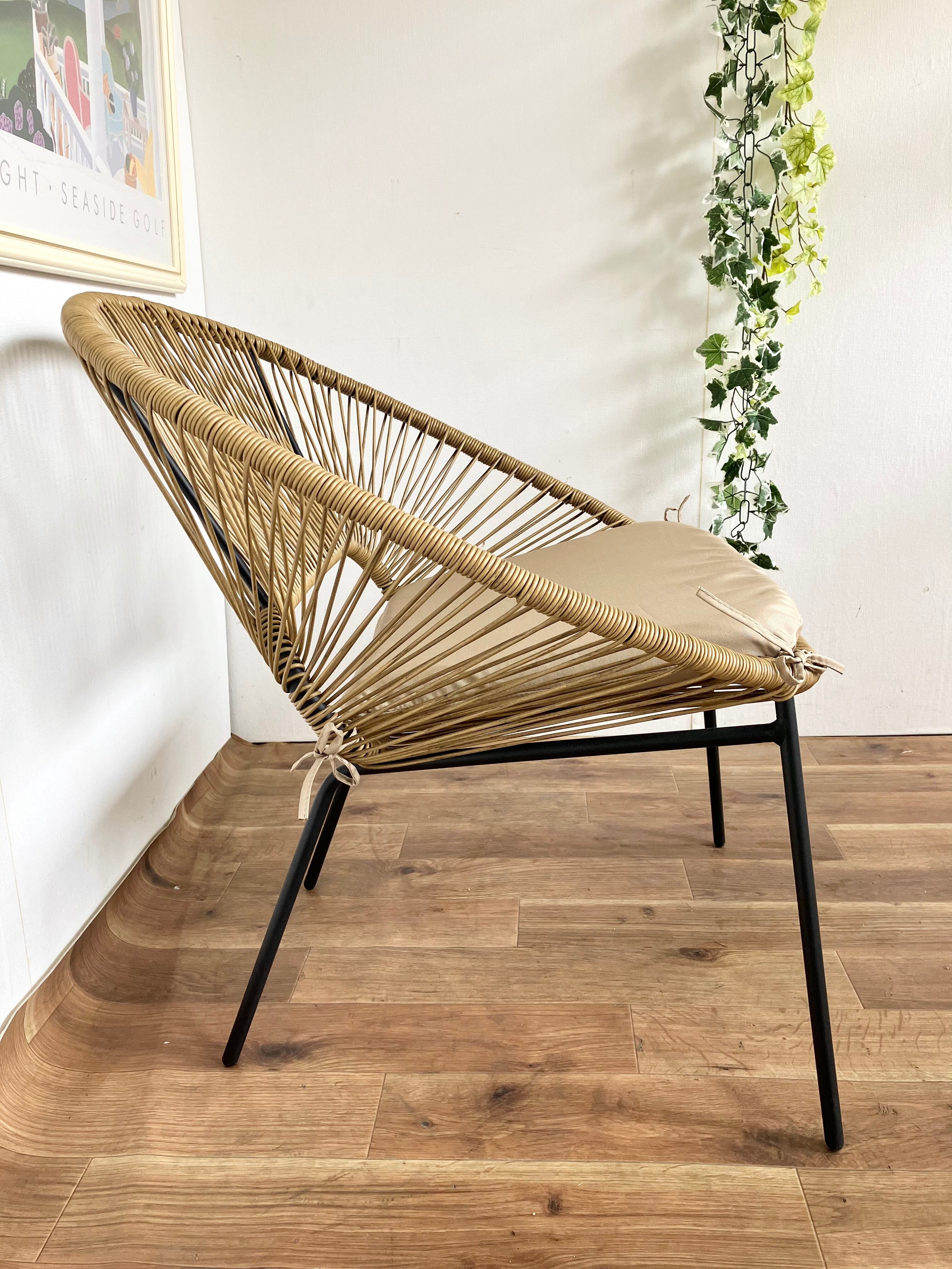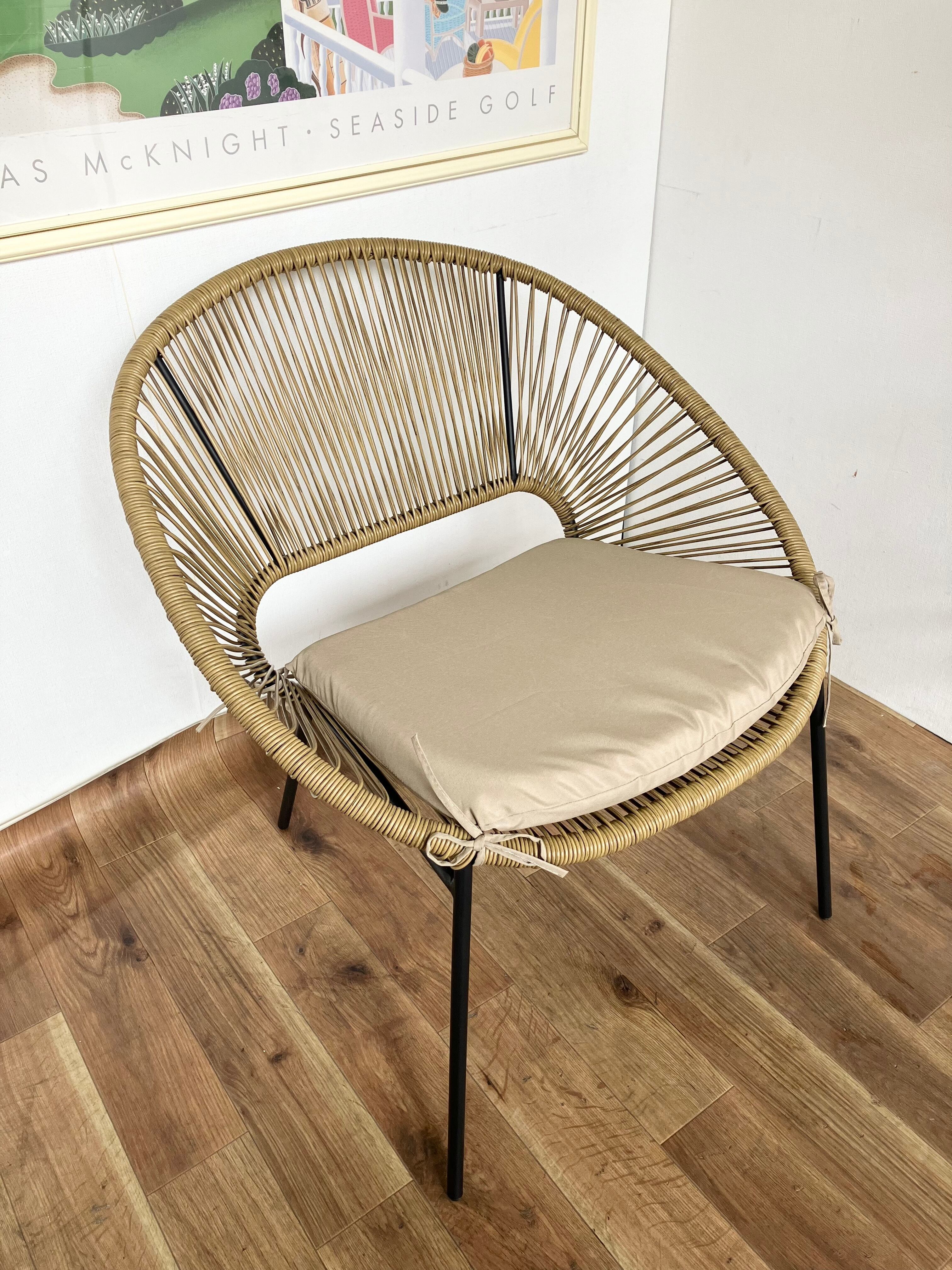 人工ラタンで編まれているので劣化しにくく丈夫の為、屋外でもお使い頂けます◎
