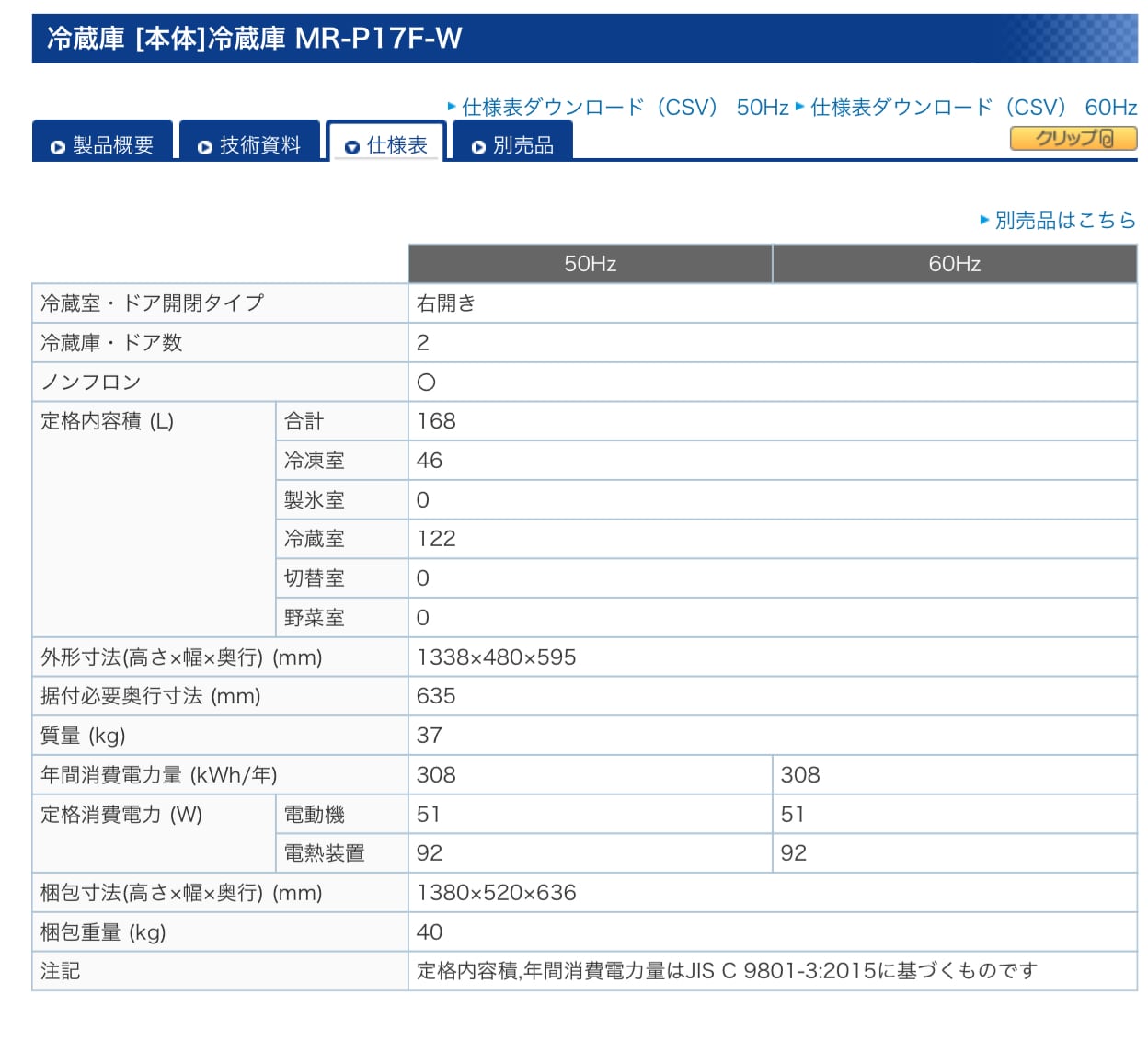 品番 MR-P17EF-KW