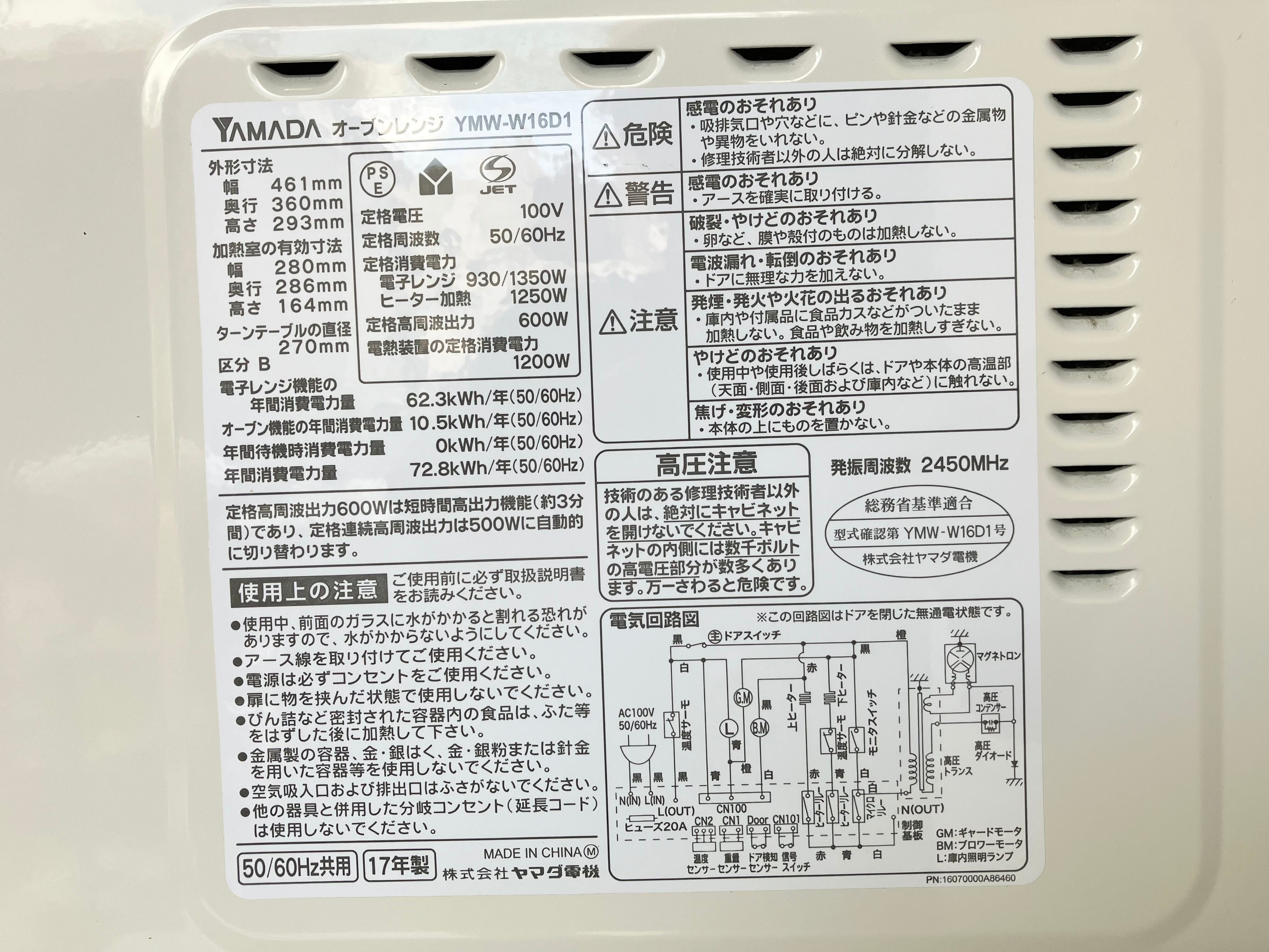 2017年製 YAMADA オーブンレンジ