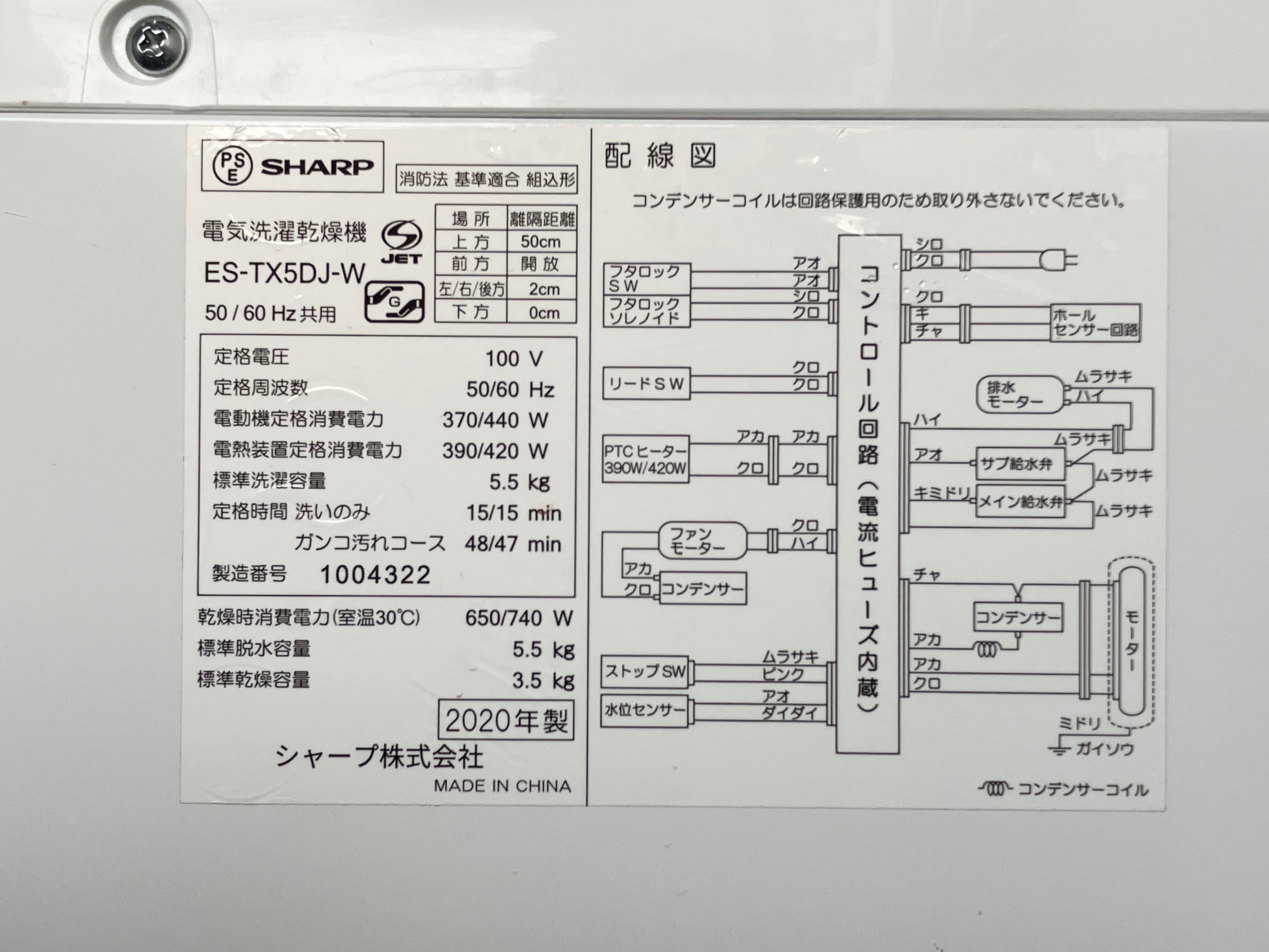 2020年製 5.5kg 洗濯乾燥機 SHARP