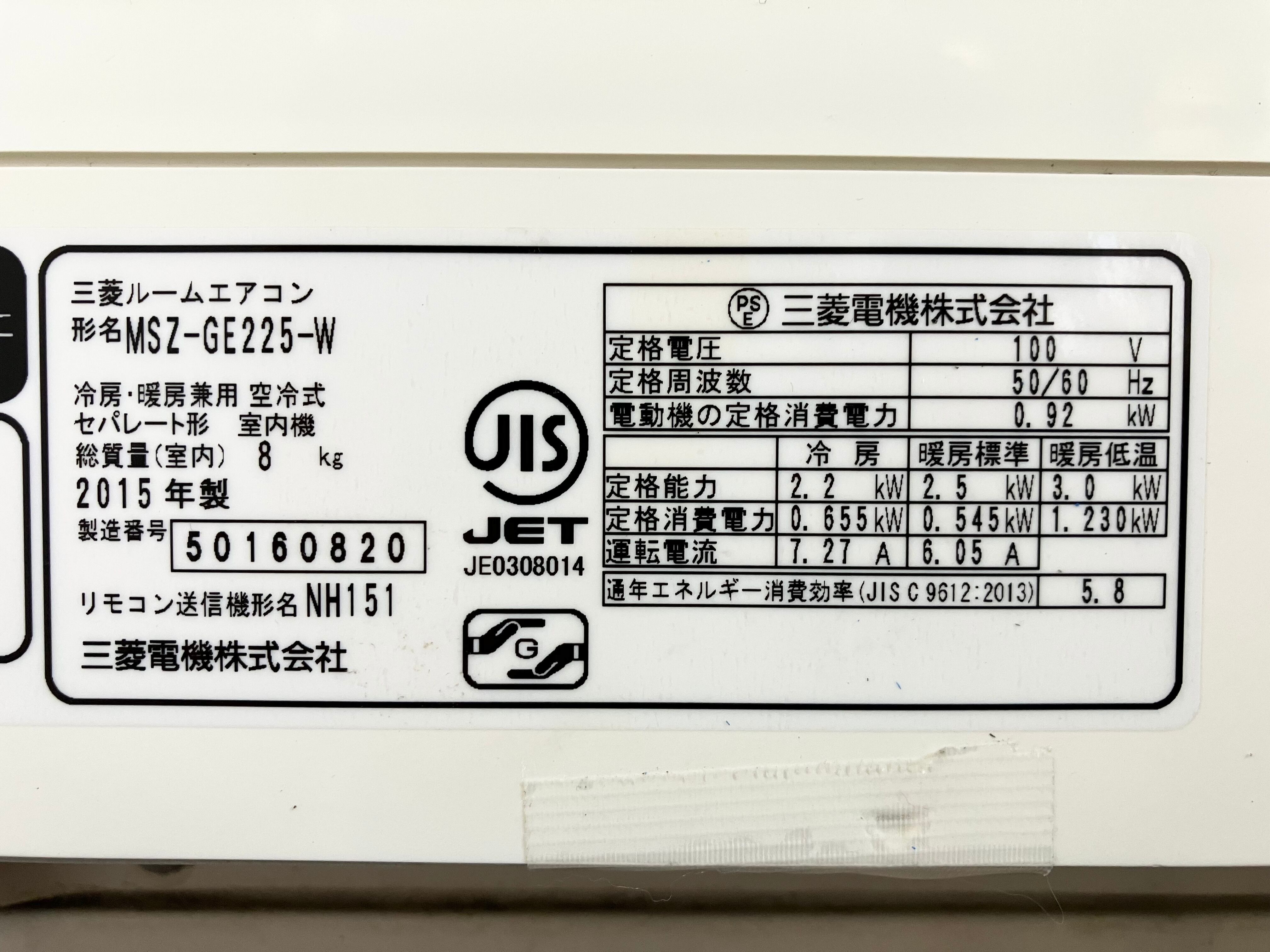 6〜8畳 2015年製 MITSUBISHI ルームエアコン