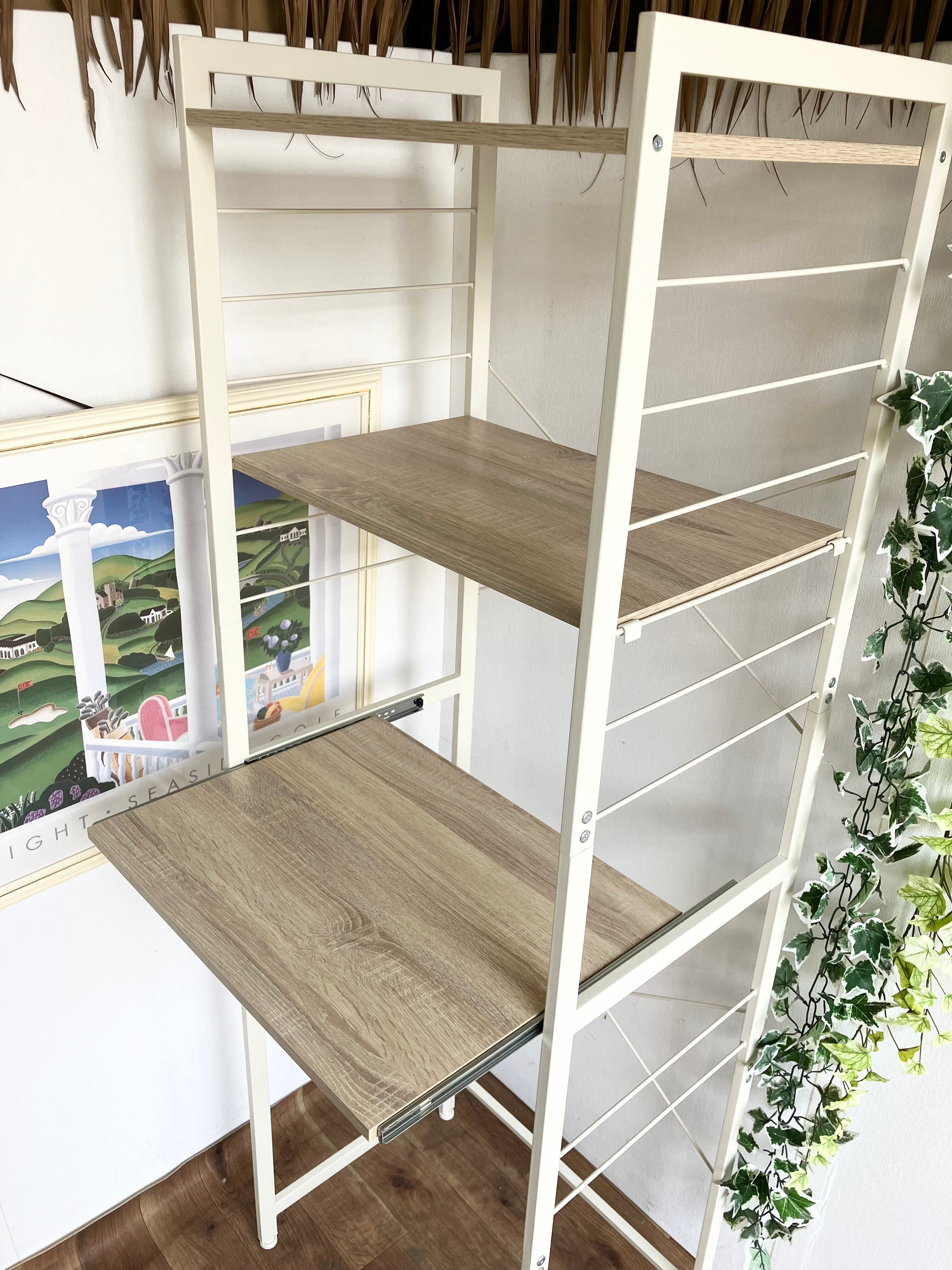 一番下の棚板はスライド棚になっているので、炊飯器台やレンジ台としてもお使い頂けます♪