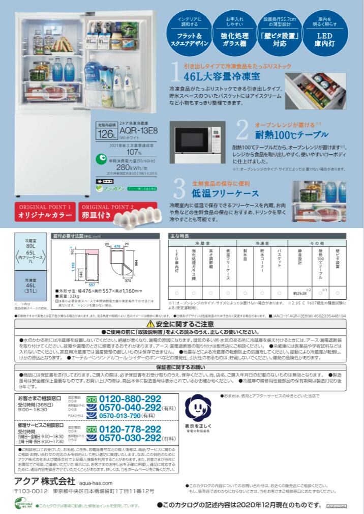 2022年製 AQUA 126L ノンフロン冷凍冷蔵庫