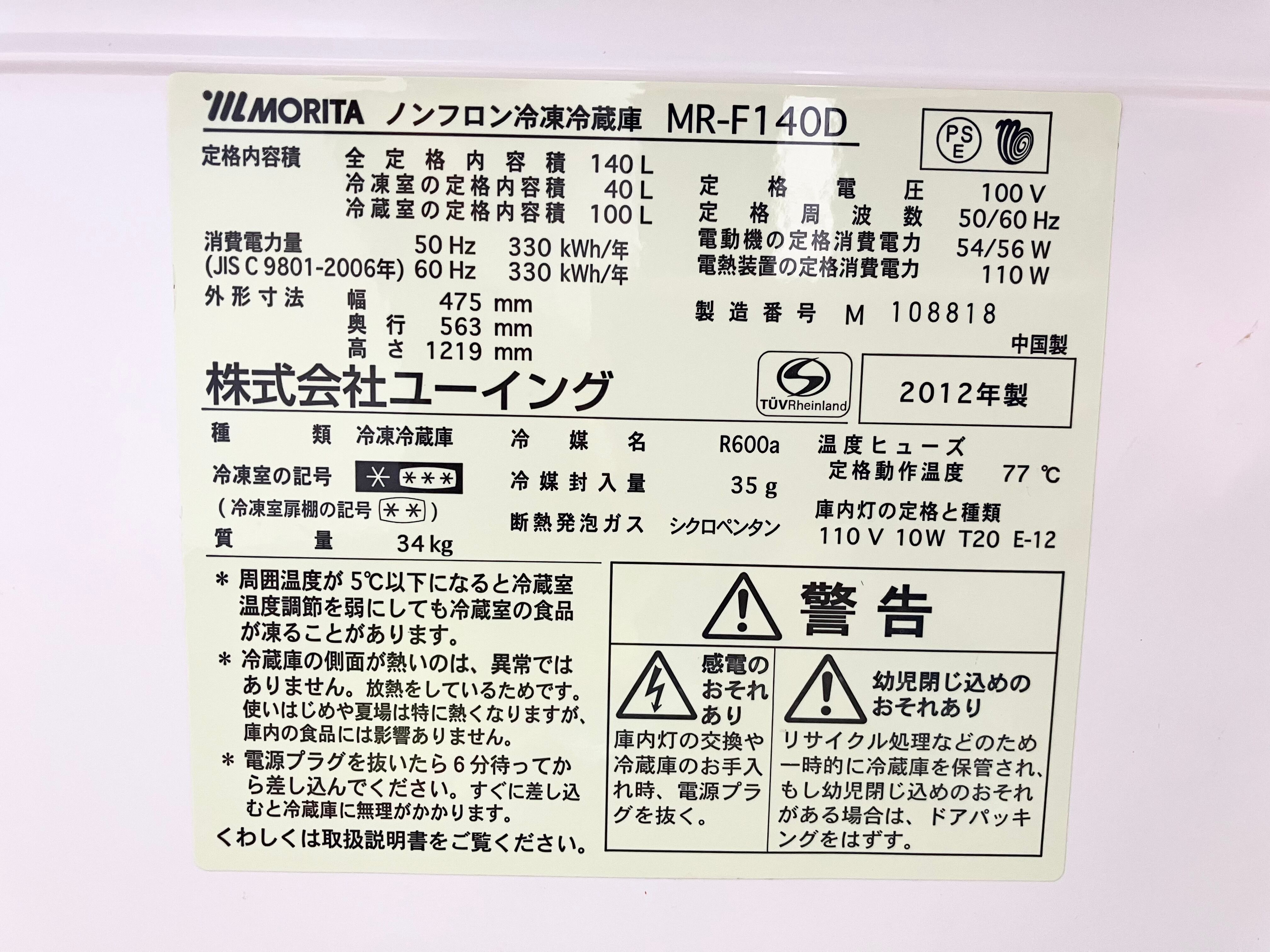 MORITA 140L ノンフロン冷凍冷蔵庫