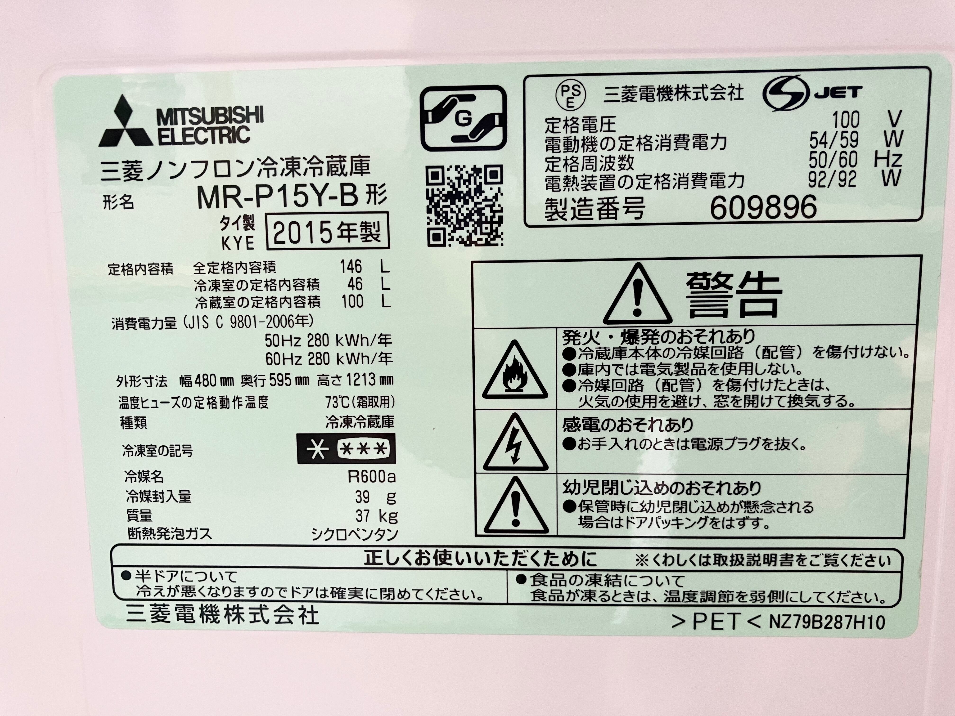 MITSUBISHI 146L ノンフロン冷凍冷蔵庫 2015年製