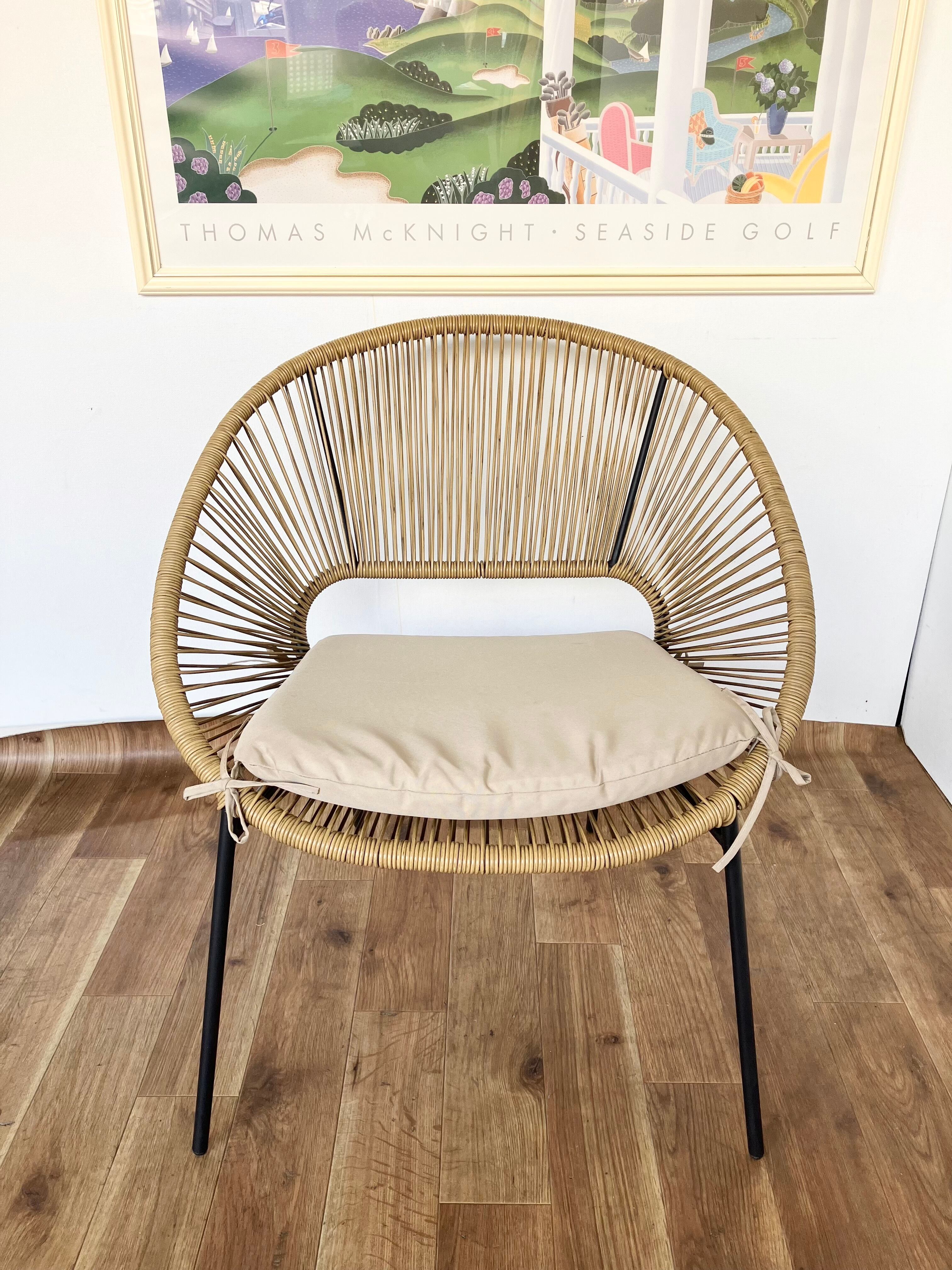 人工ラタンで編まれているので劣化しにくく丈夫の為、屋外でもお使い頂けます◎