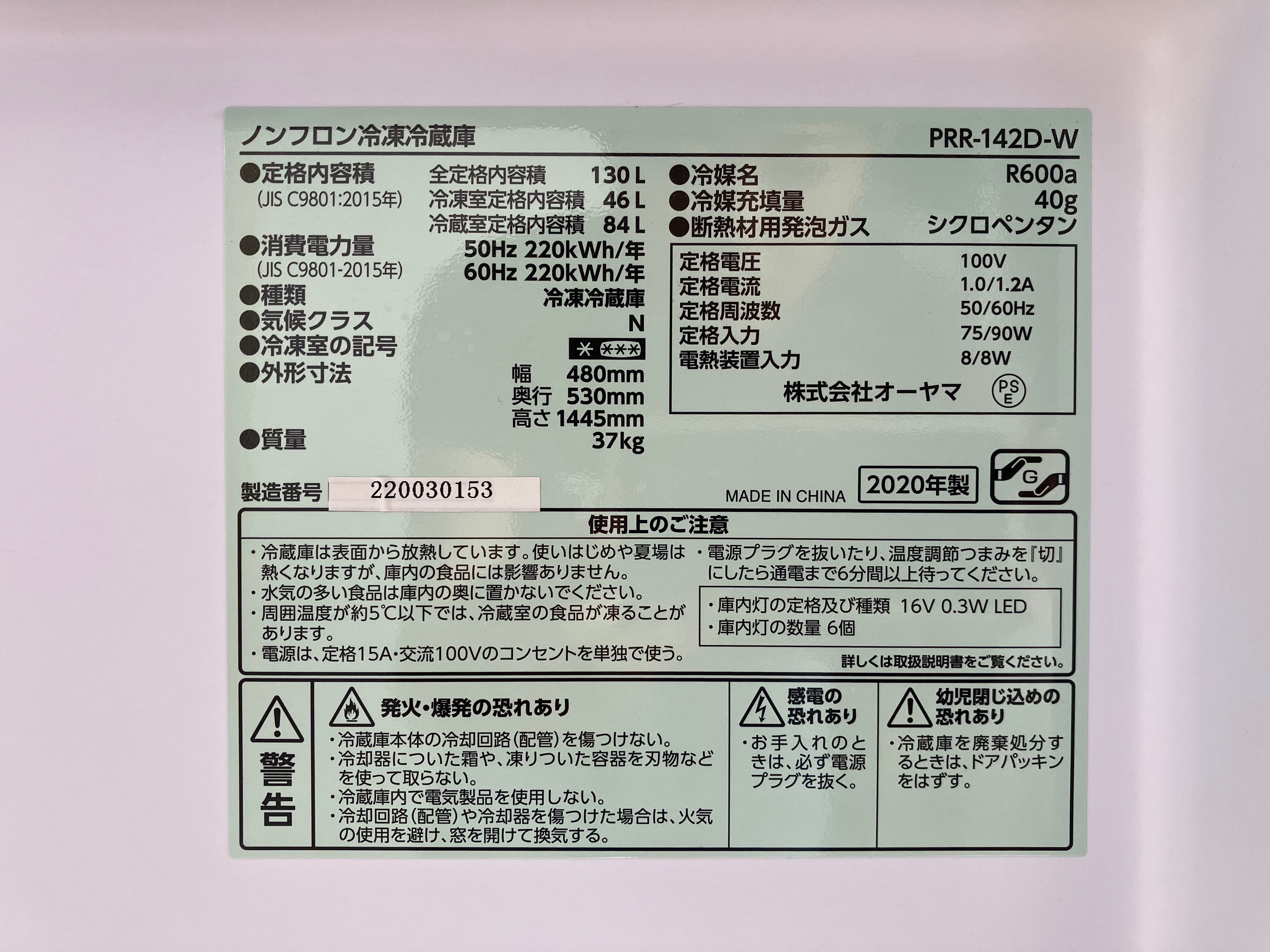 2020年製 IRIS 130L ノンフロン冷凍冷蔵庫