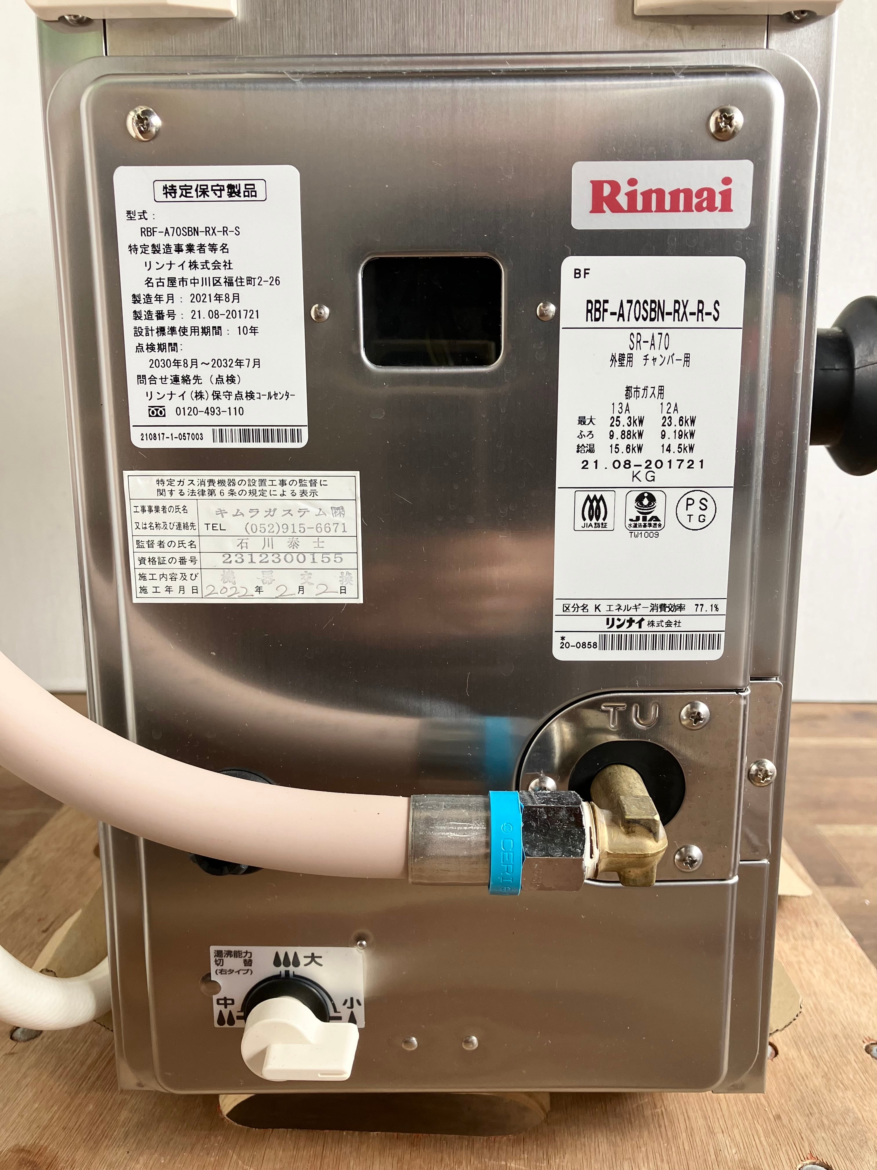 2021年製 都市ガス用 リンナイ シャワー付きバランス釜