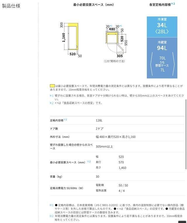 2022年製 SHARP 128L ノンフロン冷凍冷蔵庫