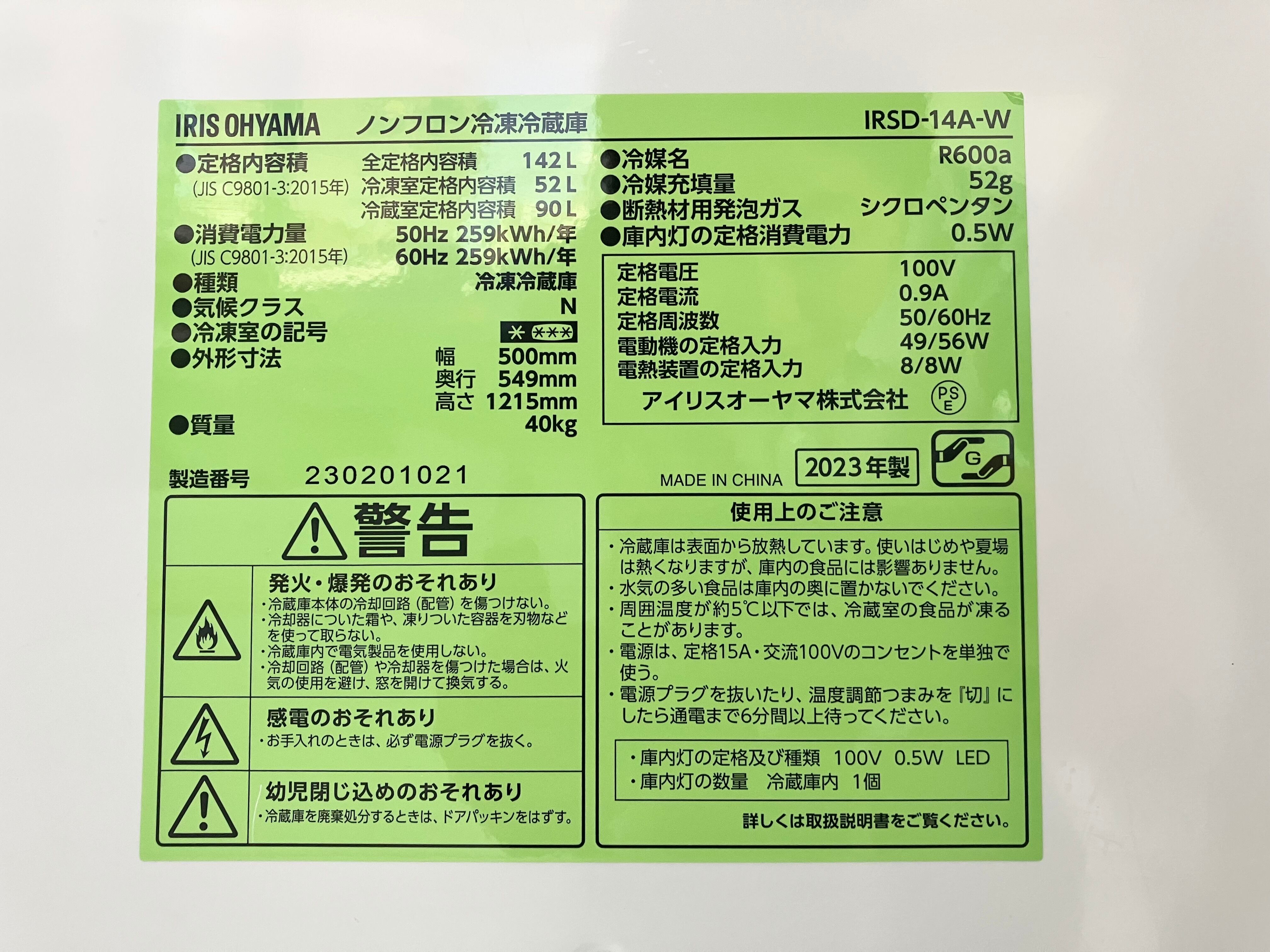 2023年製☆IRIS 142L ノンフロン冷凍冷蔵庫