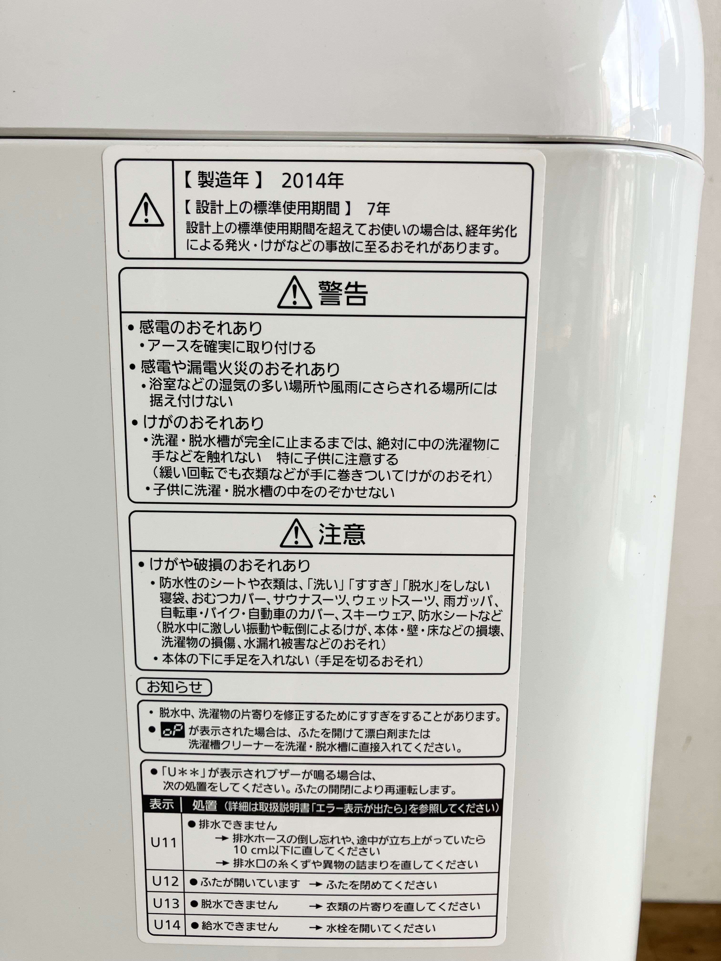7.0kg Panasonic 洗濯機 2014年製