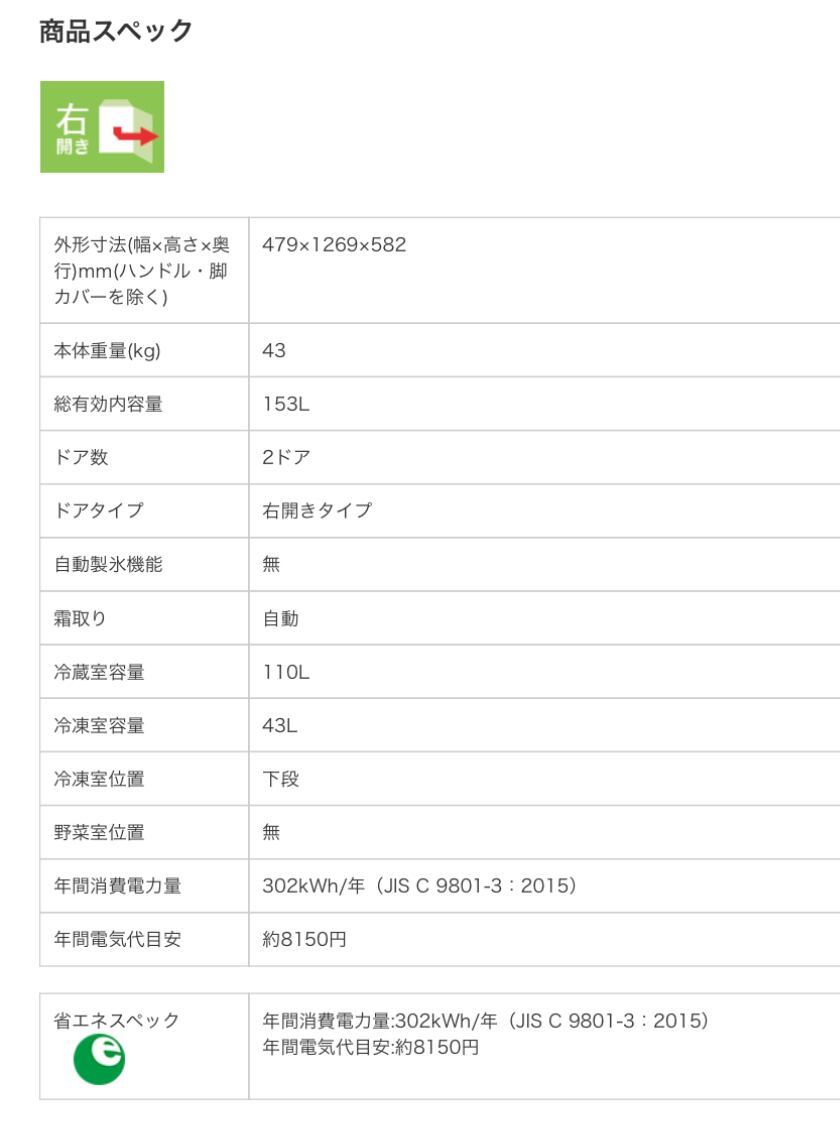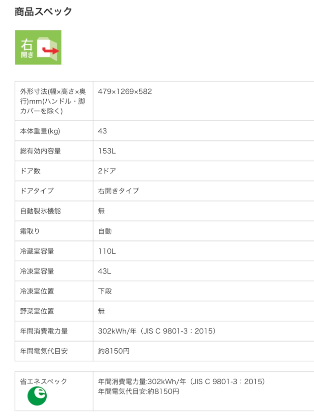 2018年製 TOSHIBA 153L ノンフロン冷凍冷蔵庫
