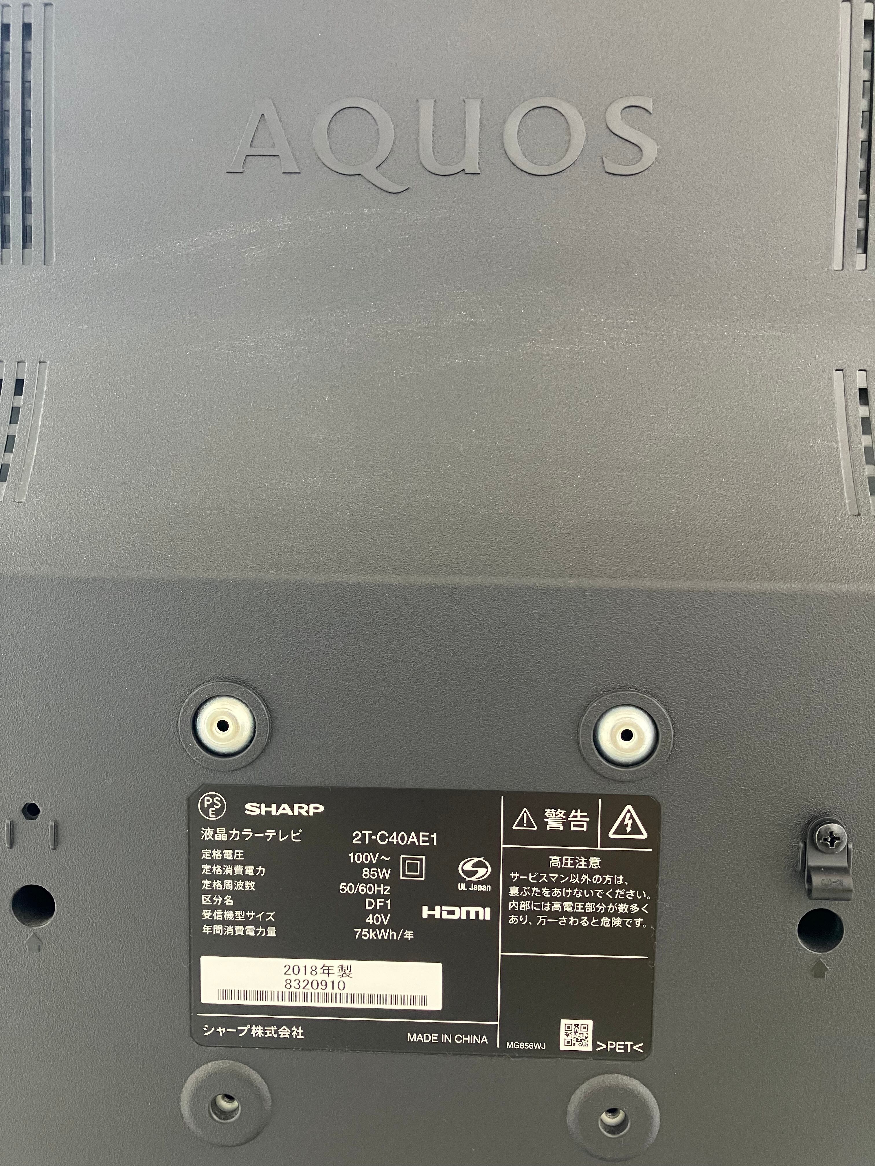 2018年製 40型 SHARP フルハイビジョン液晶テレビ