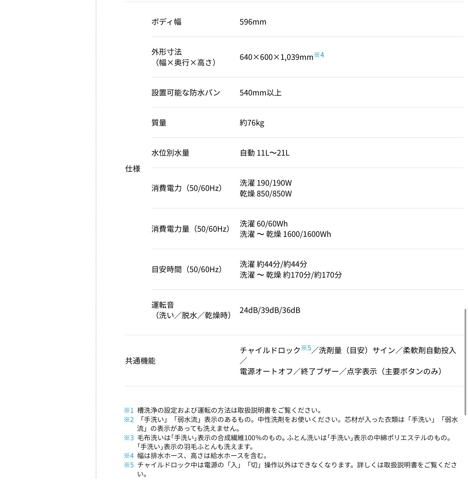 一般的な防水パンに設置できる、奥行きスリムなコンパクトタイプのドラム式洗濯乾燥機です。