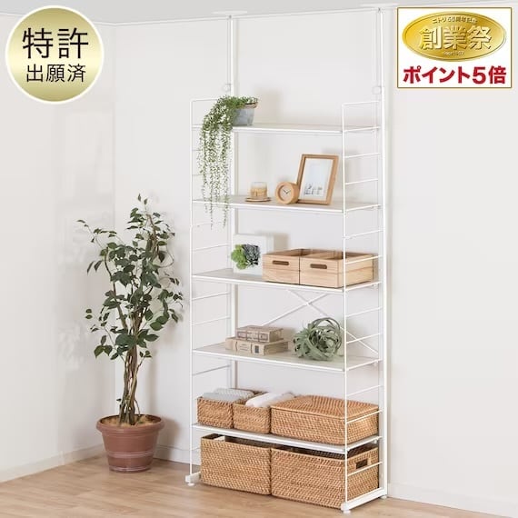 壁に穴を開けない突っ張り式のシェルフなので賃貸のお部屋にオススメ♪